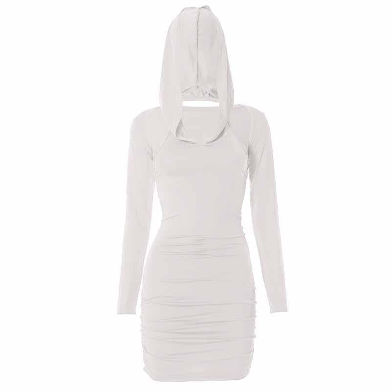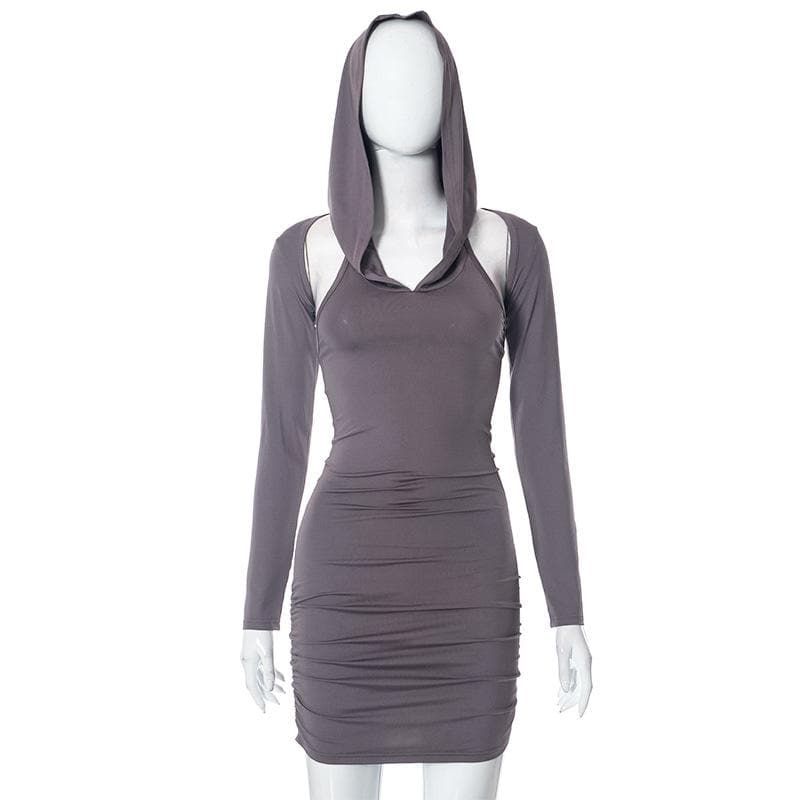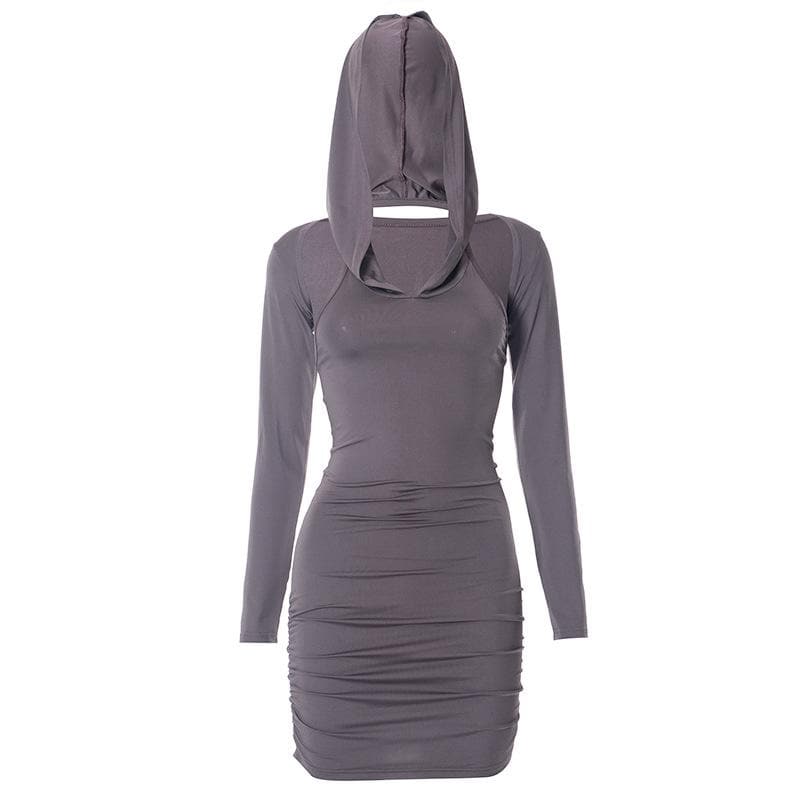 Hoodie ruched shrug long sleeve solid mini dress