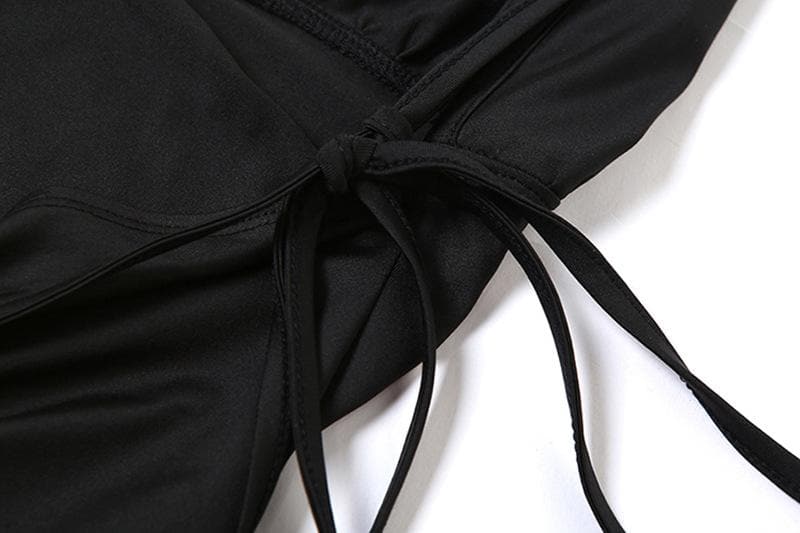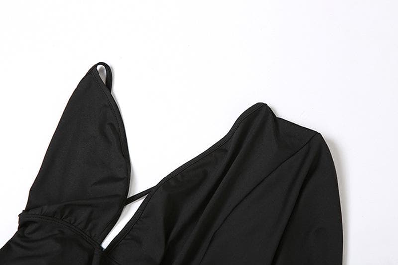 Irregular backless one shoulder flared sleeve solid maxi dress