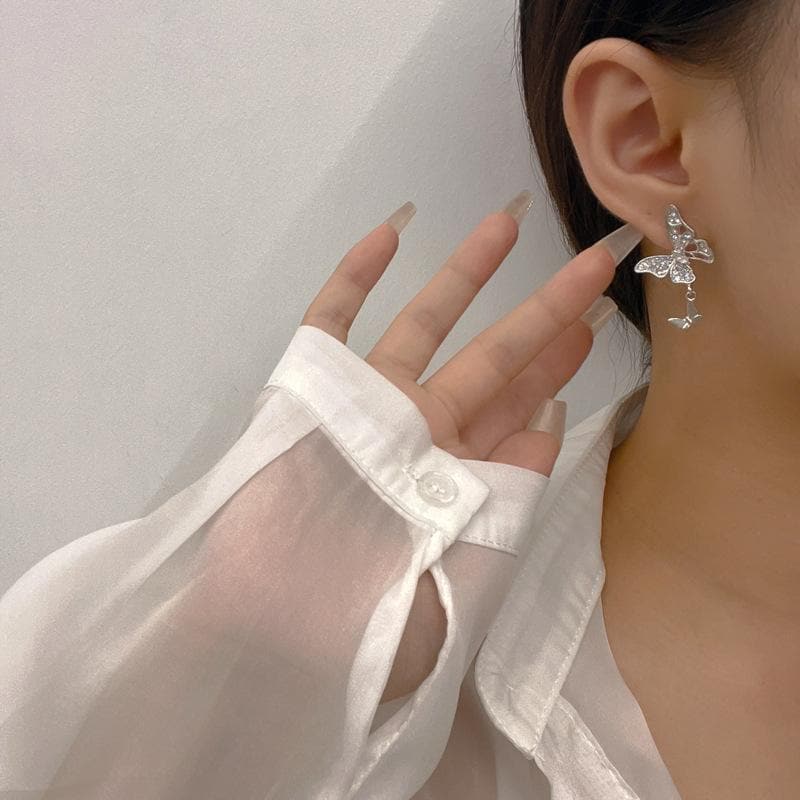 Irregular butterfly pendant rhinestone earrings