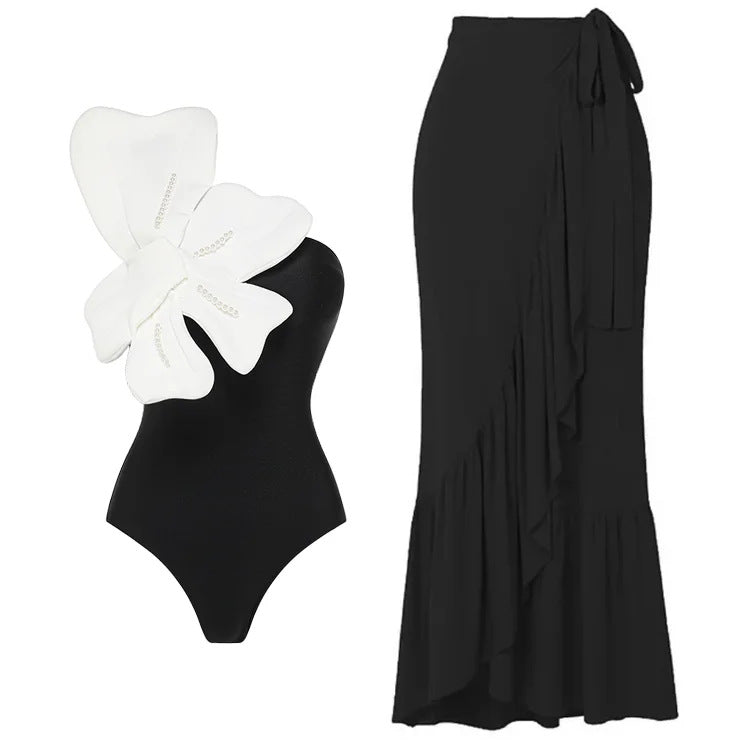 The Jill Strapless 3D Floral One Piece Swimsuit & Asymmetrical Ruffle Cover-Up is a must-have for those who appreciate a blend of modern design and elegant detailing in their swimwear. With its stylish strapless one-piece swimsuit. beautiful 3D floral embellishments. and dramatic asymmetrical ruffle cover-up. this set is perfect for making a statement at the beach or pool. Embrace the chic and sophisticated allure of the Jill swimsuit set and elevate your swimwear collection with this stunning ensemble. Whether you're lounging by the pool. enjoying a day at the beach. or heading to a casual seaside café. the Jill swimsuit set ensures you look and feel fabulous
