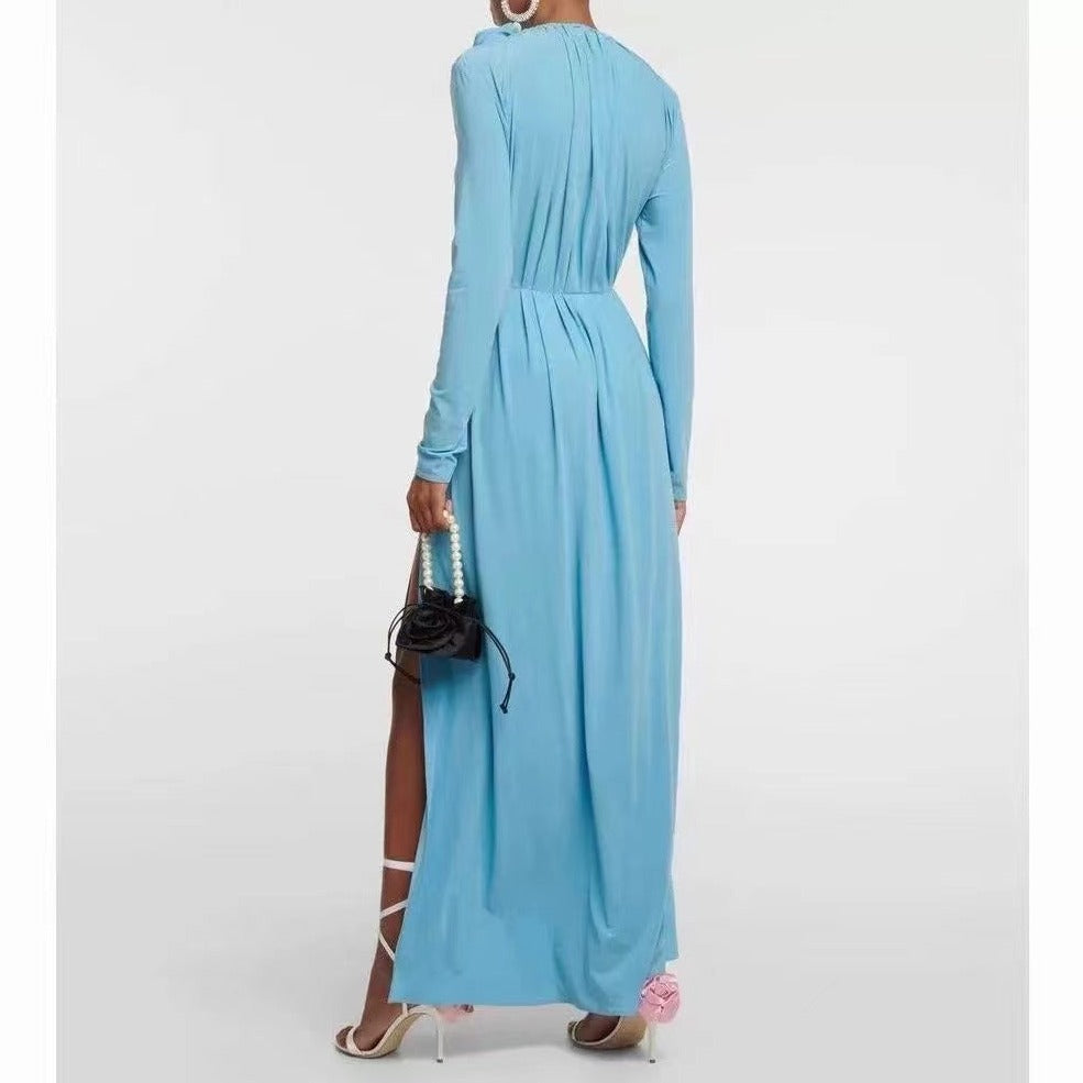 Modern Allure: The daring side slit adds a modern twist to the classic maxi dress. offering a glimpse of the leg and creating a striking silhouette.