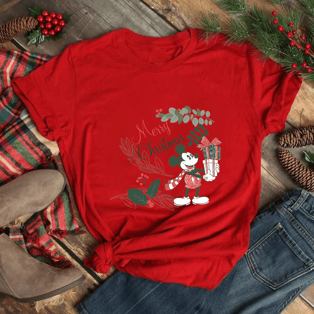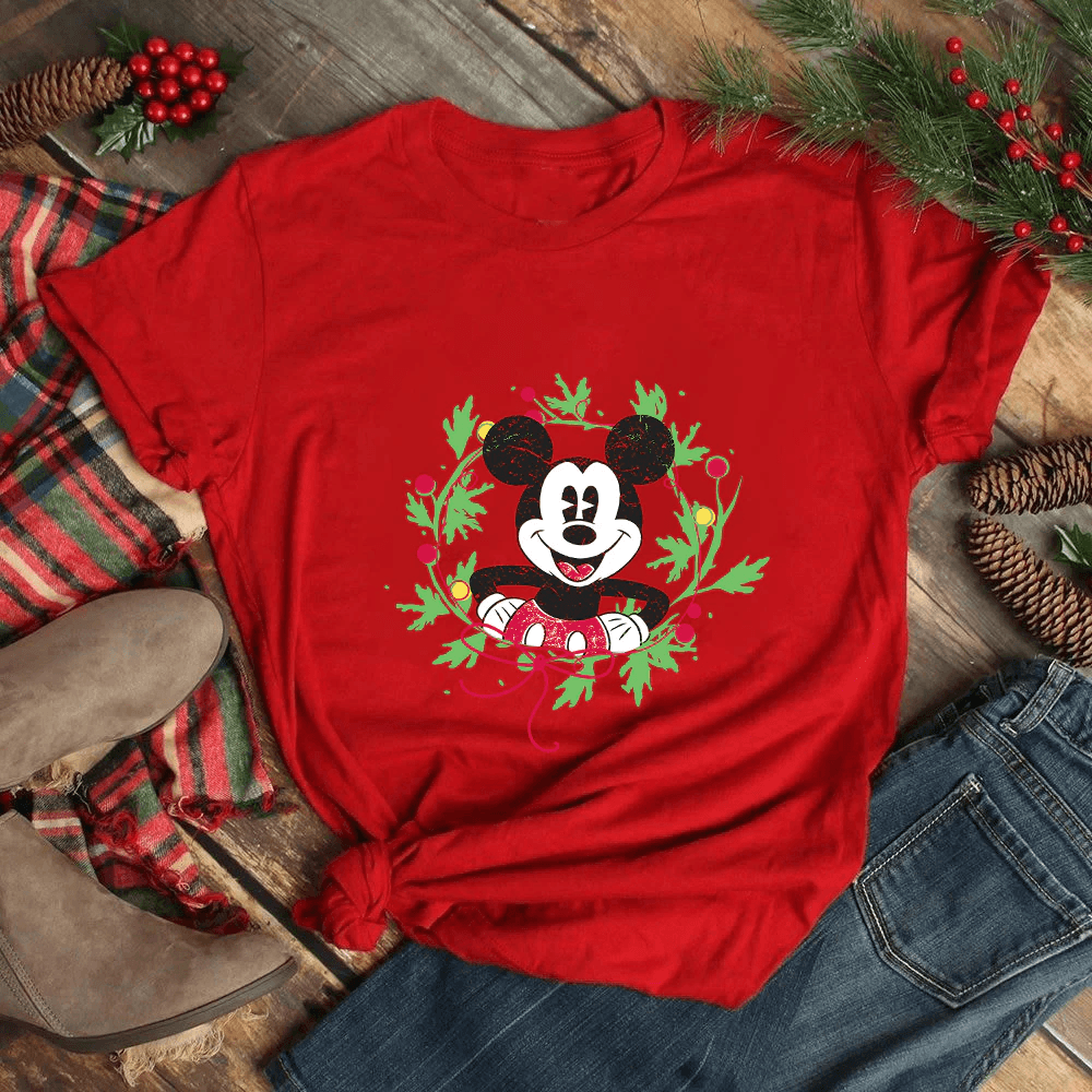 Judith Short Sleeve Disney Christmas Cartoon Print Top