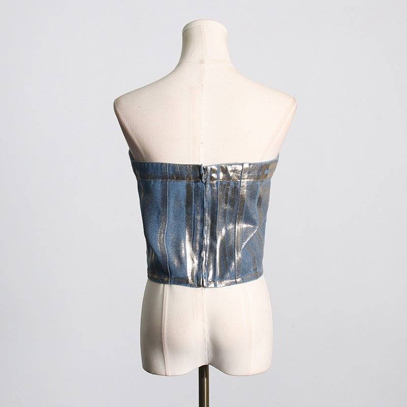 Statement-Making Appeal: The combination of the strapless design and metallic finish creates a statement-making appeal. Whether you're attending a special event or adding a touch of glamour to your everyday style. the Kathryne Top ensures you stand out with confidence.