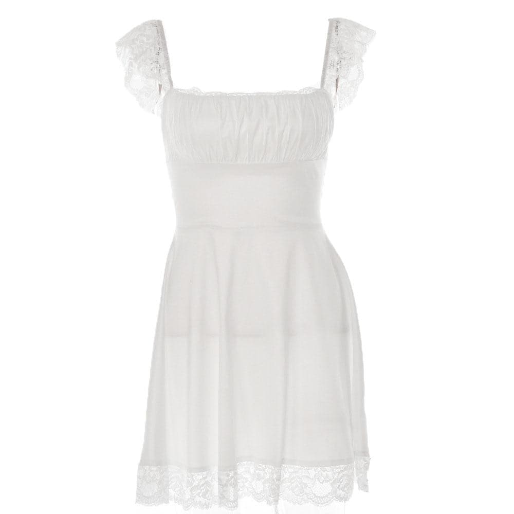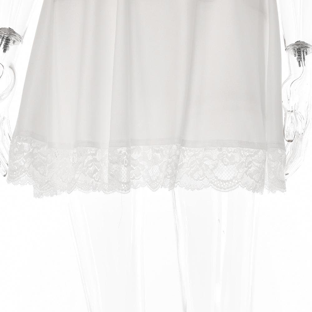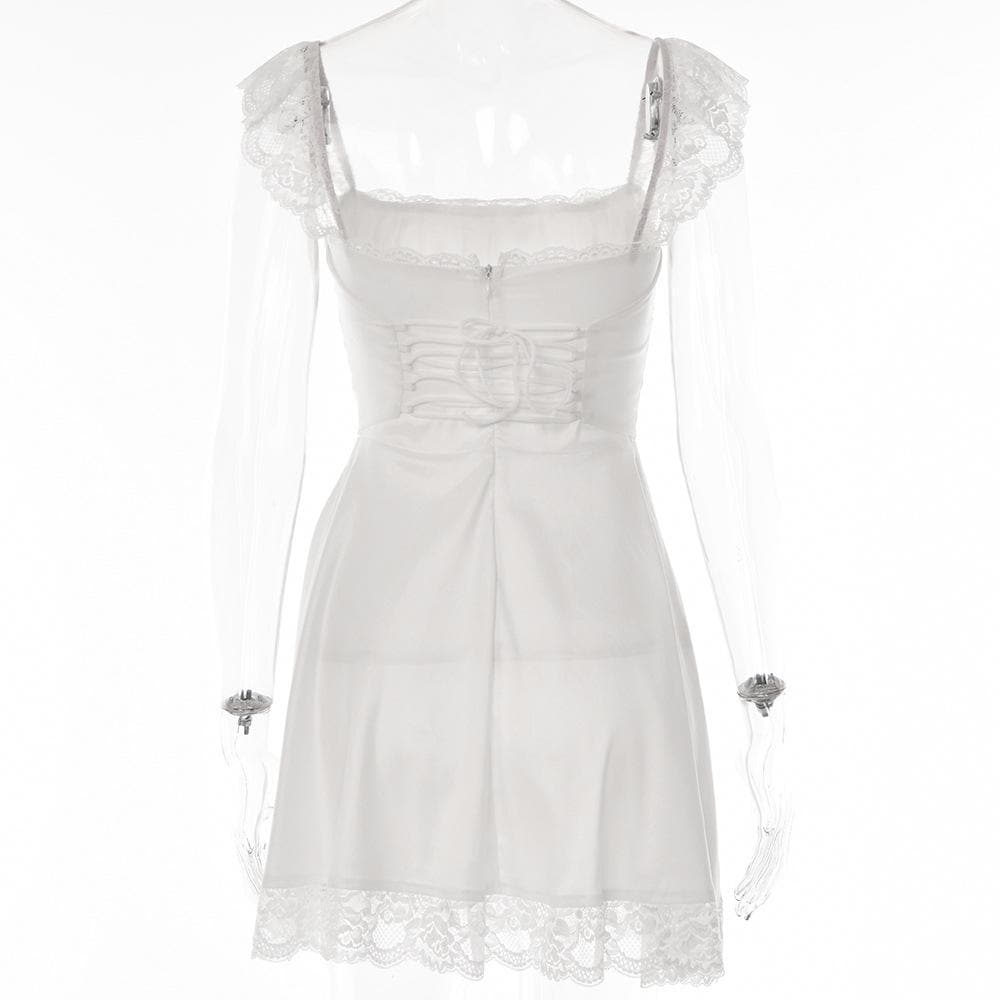 Lace hem solid cap sleeve zip-up ruched lace up mini dress