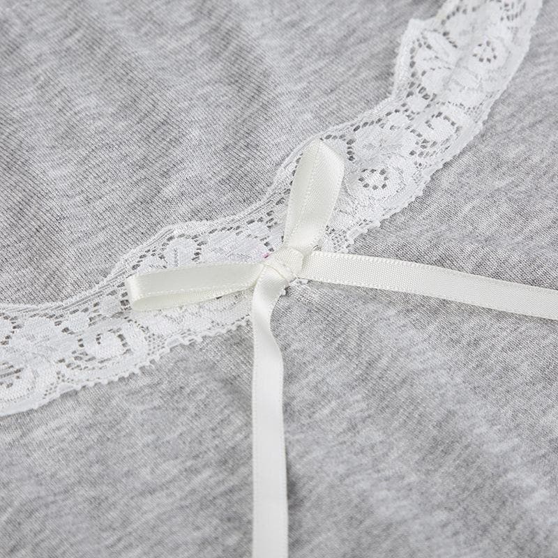 Lace hem square neck contrast long sleeve ruffle mini dress