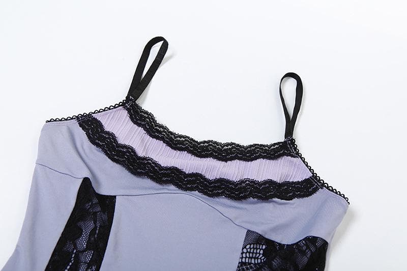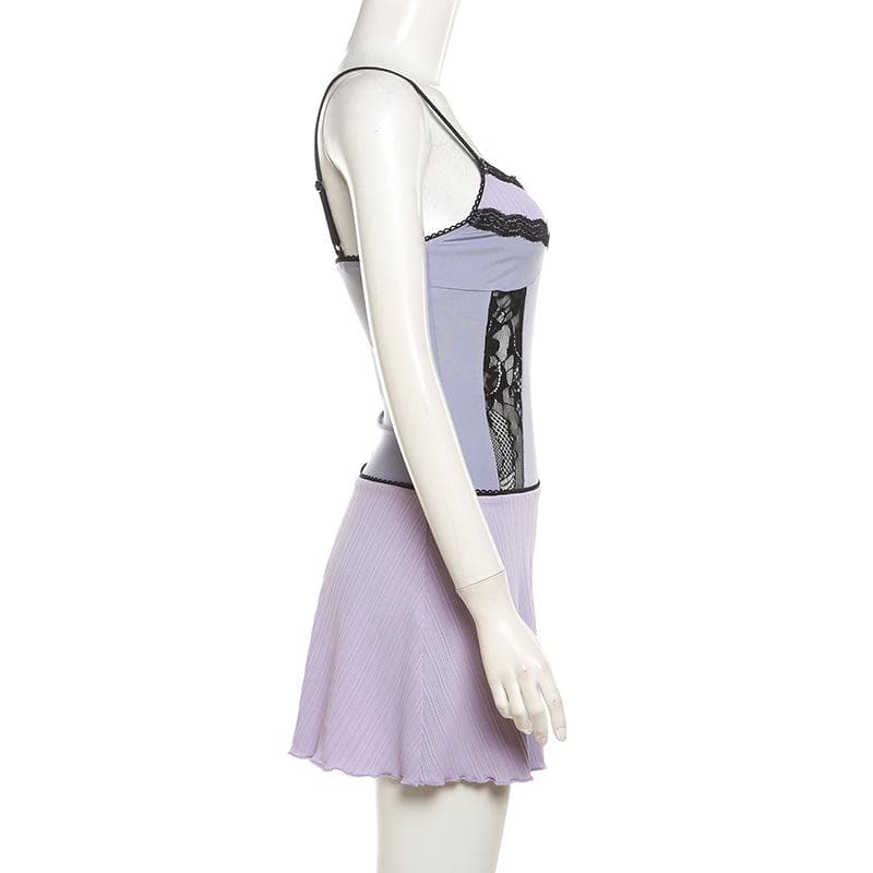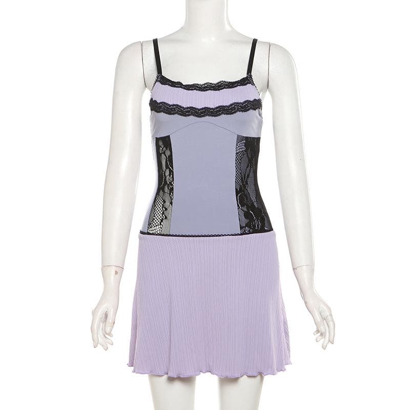 Lace ruffle patchwork ribbedribbed cami mini dress