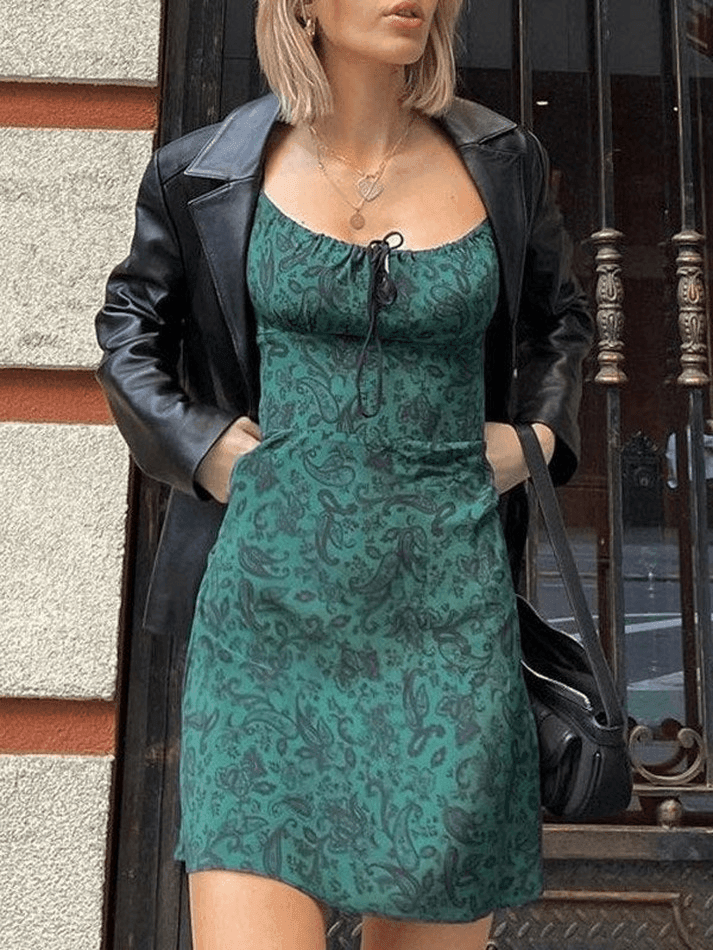 Design: Allover Print Detail. Tie Front Fastening. Adjustable Shoulder Straps