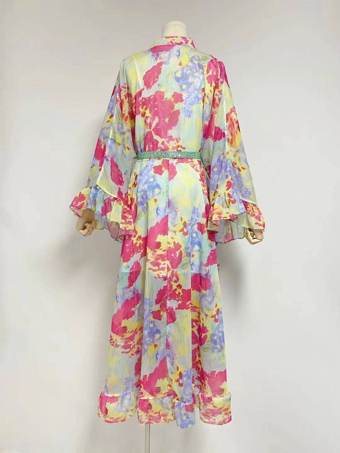 Autumn-Inspired Print: Immerse yourself in the enchanting autumn-inspired print that adorns the maxi-length silhouette of Lanna. The print features rich hues. evoking the warmth and beauty of fall foliage. creating a visual feast that is both eye-catching and on-theme for the season.