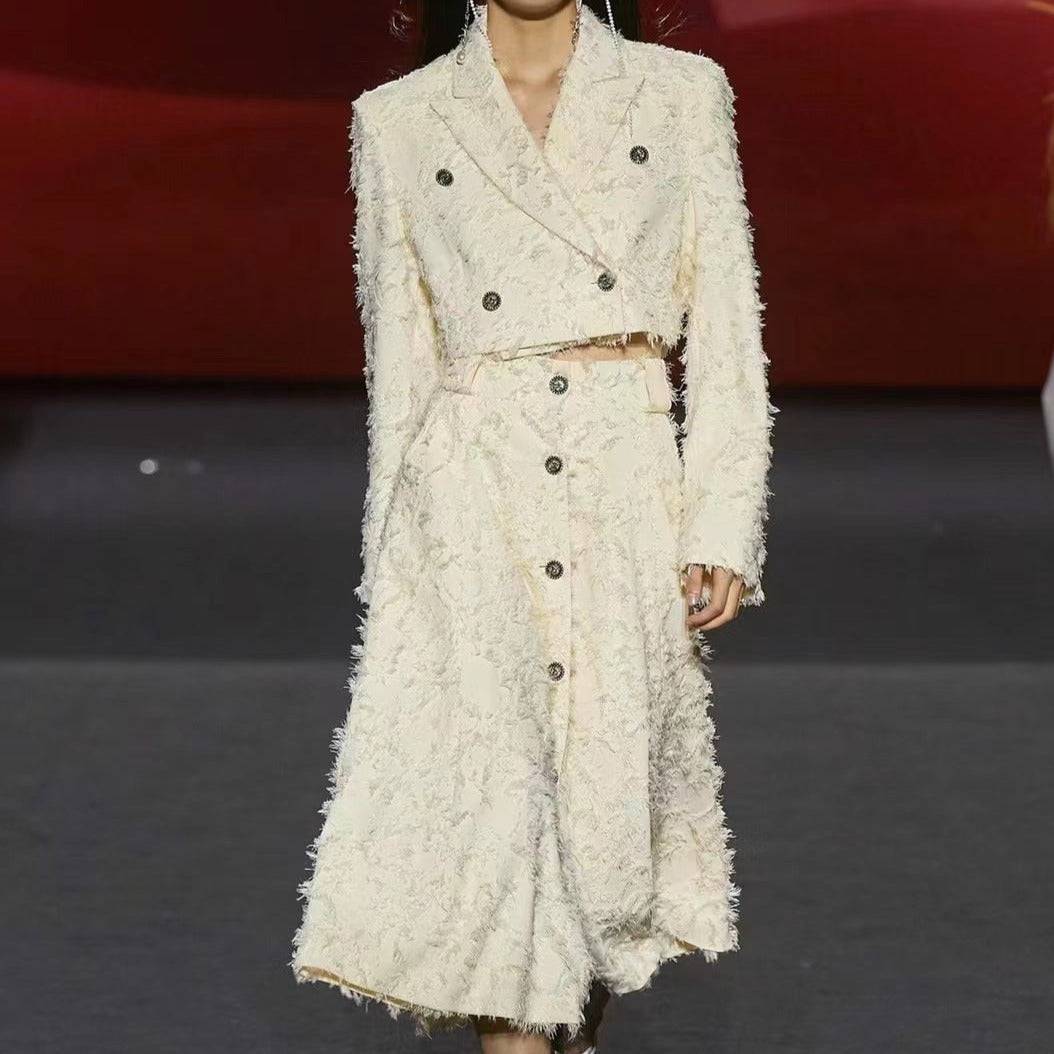 Coordinated Set: Lark comes as a coordinated set. offering the convenience of a polished and cohesive outfit without the need for extensive styling. The combination of the long sleeve notched collar top and high waist A-line skirt creates a harmonious balance between modern sophistication and classic style.
