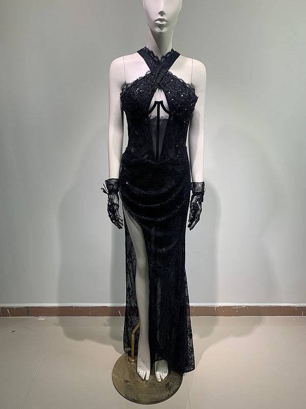 - The side slit allows for graceful movement and a hint of sensuality. ensuring the dress is both stylish and comfortable.