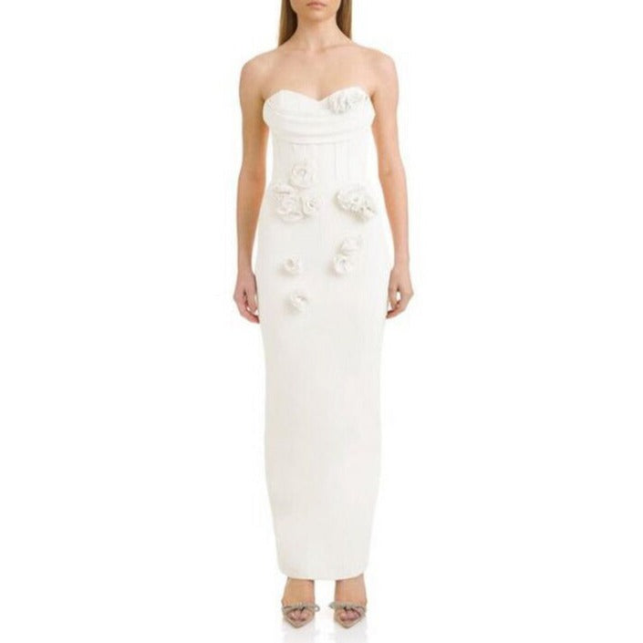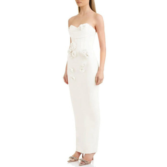 Emanate ethereal beauty in the Suncoy Lesley Off Shoulder White Flower Maxi Dress. a vision of grace and elegance that captures the essence of romance.