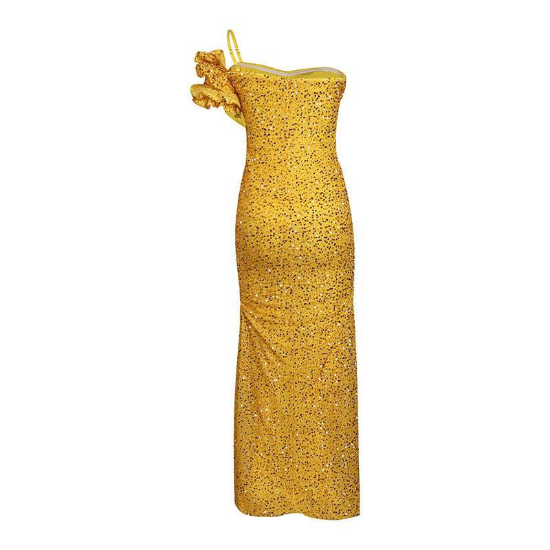 Step into the spotlight with the Liza Shiny Sequins One Shoulder Slit Maxi Dress �a perfect fusion of glamour. elegance. and contemporary style. This dress isn't just an ensemble; it's a statement of red-carpet-worthy fashion. Embrace the shiny sequins. one-shoulder elegance. and thigh-high slit. expressing your unique sense of style with confidence and flair. Whether you're attending a gala. a formal event. or a glamorous party. the Liza Dress ensures you make a lasting impression with a perfect blend of sparkle and sophistication.