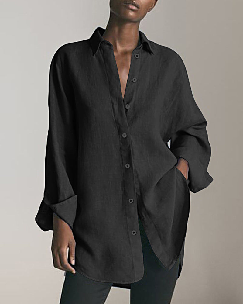 Long Sleeve Loose Casual Women's Shirt Solid Color Lapel Shirt Top?