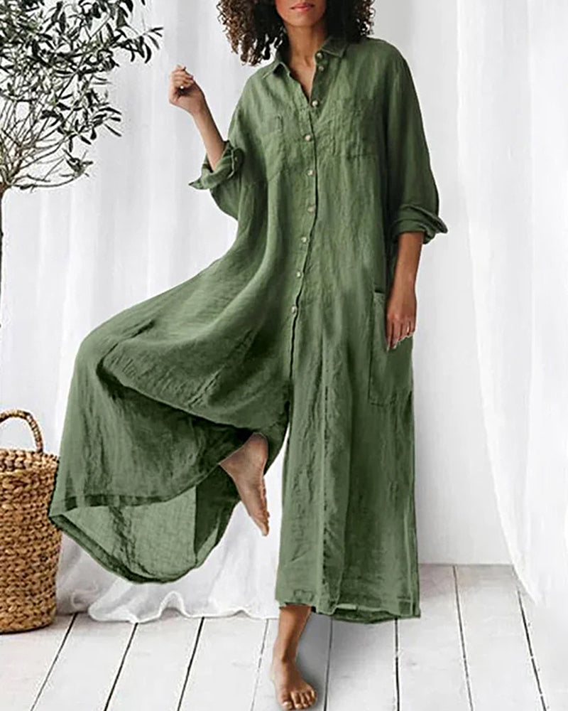 Loose Stand Collar Long Cropped Sleeve Jumpsuit?