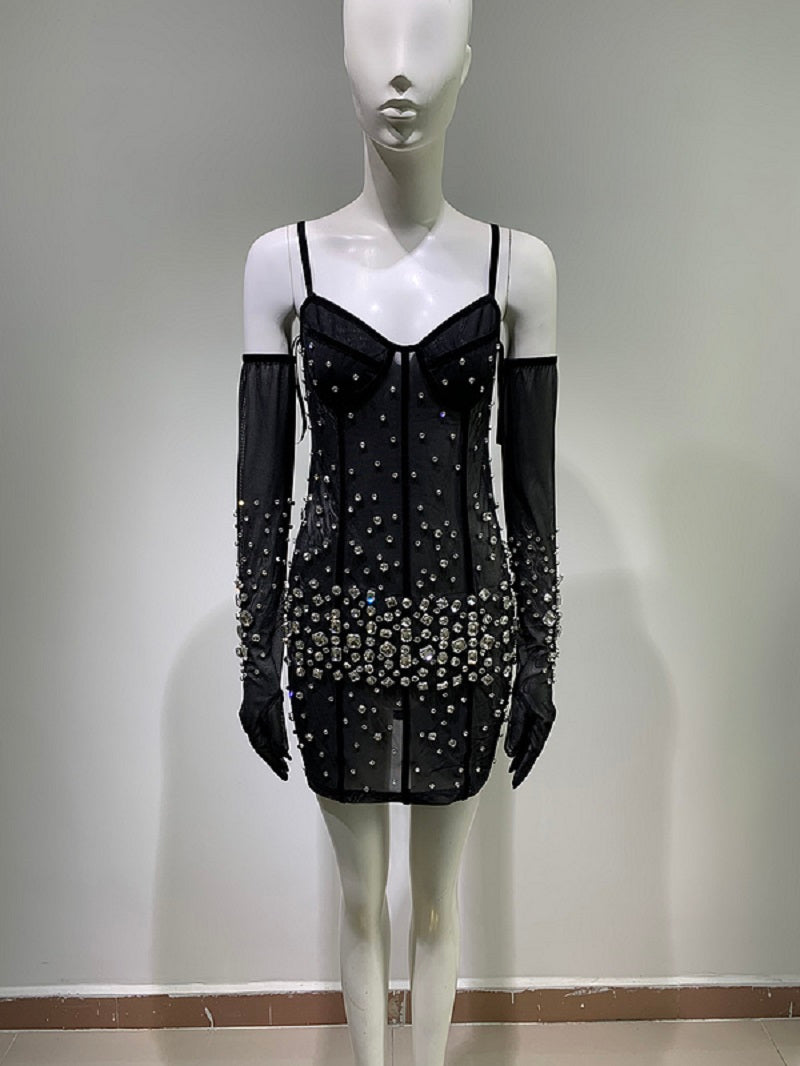 The Lucy Spaghetti Strap Crystal Bustier Mesh Mini Dress is a must-have for those who want to combine sophistication with a touch of glamour. With its delicate spaghetti straps. sparkling crystal-embellished bustier. and elegant mesh overlay. this dress offers a captivating and stylish look. Whether you're attending a special event or simply want to feel fabulous. the Lucy dress ensures you make a stunning impression. Embrace the allure and elegance of this unique piece and elevate your wardrobe with the Lucy dress.