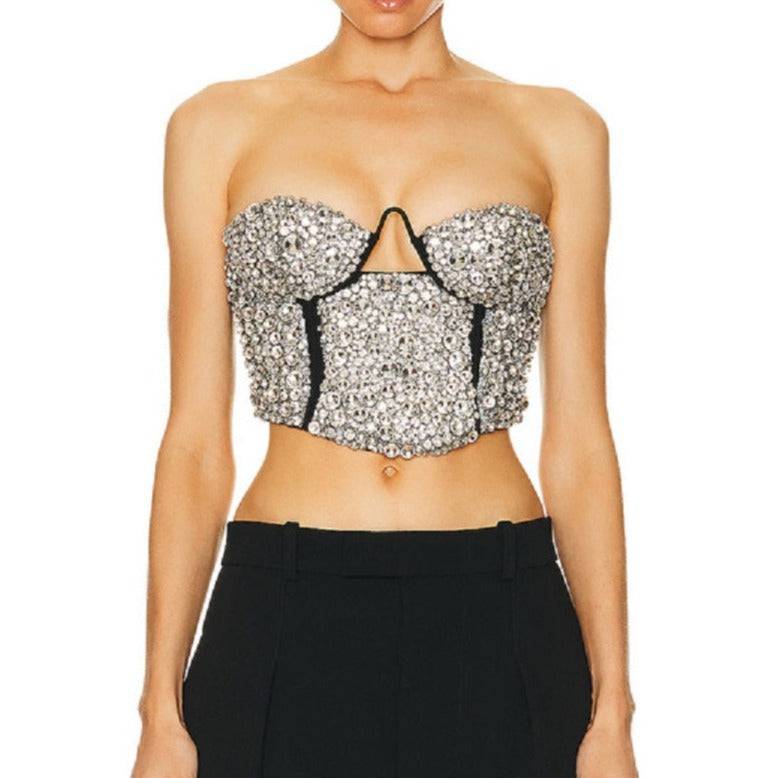 Confidence and Glamour: Wear the Mareli Crystal-embellished Corset Top with confidence and glamour. The combination of the corset structure and sparkling crystals exudes a sense of empowerment and stylish self-expression. perfect for making a bold fashion statement.