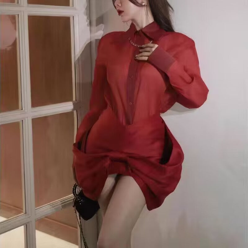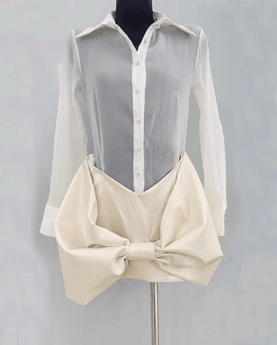 Sophistication with the Suncoy Margie Asymmetric Ribbon Detail Button Up Dress. a chic ensemble designed to elevate your style with modern flair.