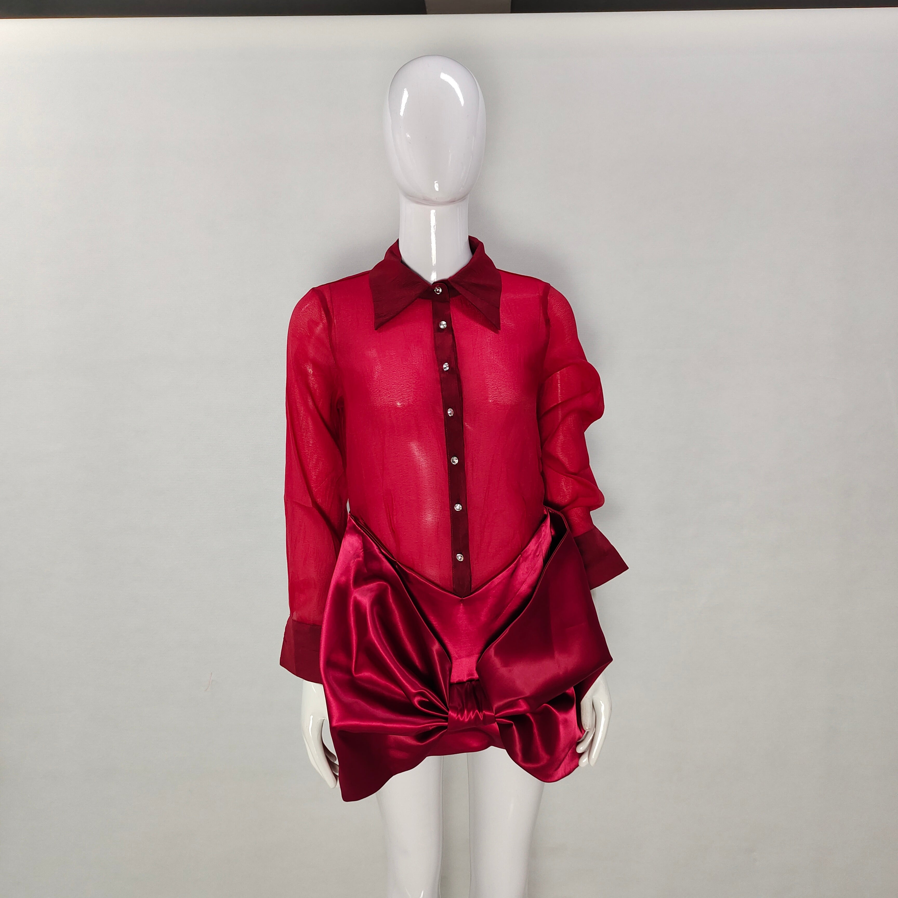 Perfect for a day at the office. a brunch with friends. or a stylish evening out. the Suncoy Margie Asymmetric Ribbon Detail Button Up Dress is sure to make a statement. Embrace your inner fashionista and exude confidence and style in this unforgettable ensemble.