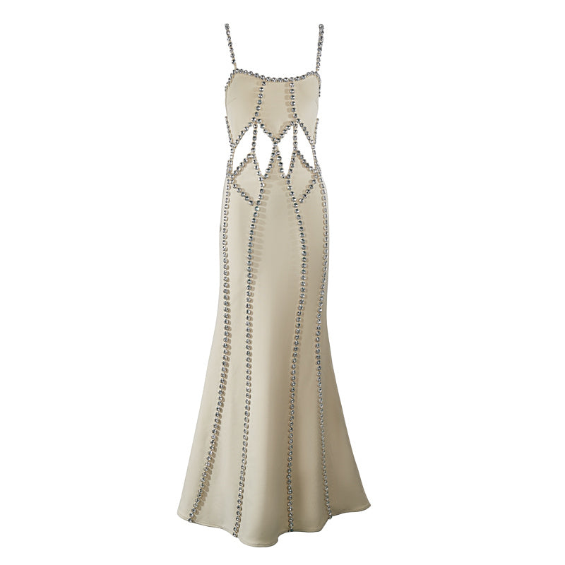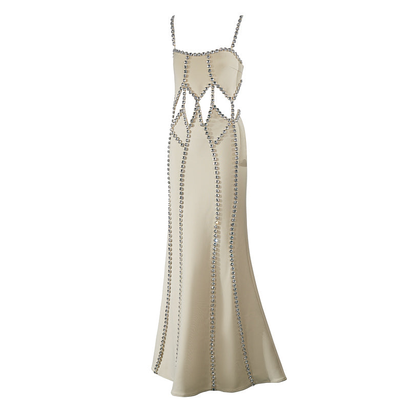 Introducing the Martha Spaghetti Strap Cut Out Diamond Embellished Maxi Dress. a show-stopping piece designed to make a bold statement at any special occasion. This maxi dress features delicate spaghetti straps. daring cut-out details. and exquisite diamond embellishments. combining elegance with a touch of allure. Perfect for galas. formal events. or glamorous nights out. the Martha dress ensures you shine with sophistication and confidence.