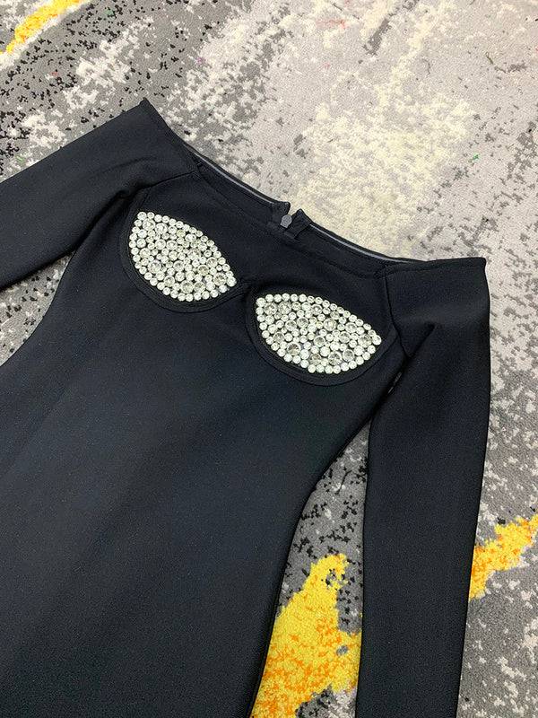Ideal for Special Occasions: The Maryjane Mini Dress is the ideal choice for special occasions. cocktail parties. or any event where you want to stand out. Its bold design and intricate crystal detailing make it a show-stopping ensemble.