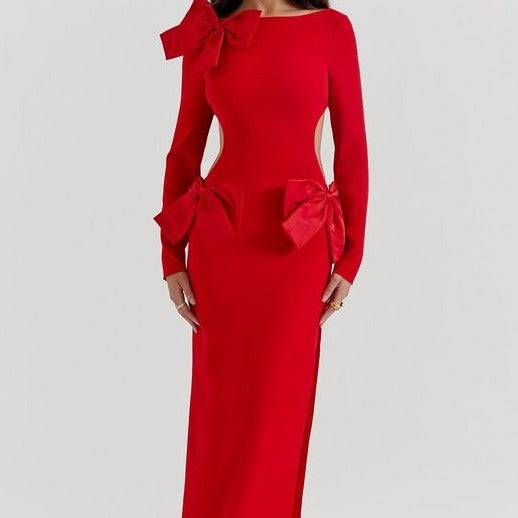 The Suncoy Merrell Bow Detail Maxi Dress is a stunning and chic ensemble that effortlessly combines style and comfort. Crafted from high-quality polyester fabric. this dress not only offers a luxurious feel but also ensures durability.
