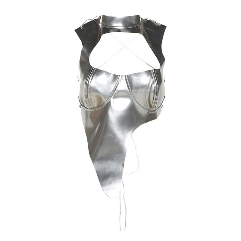 Metallic self tie cross back sleeveless hollow out crop cut out top