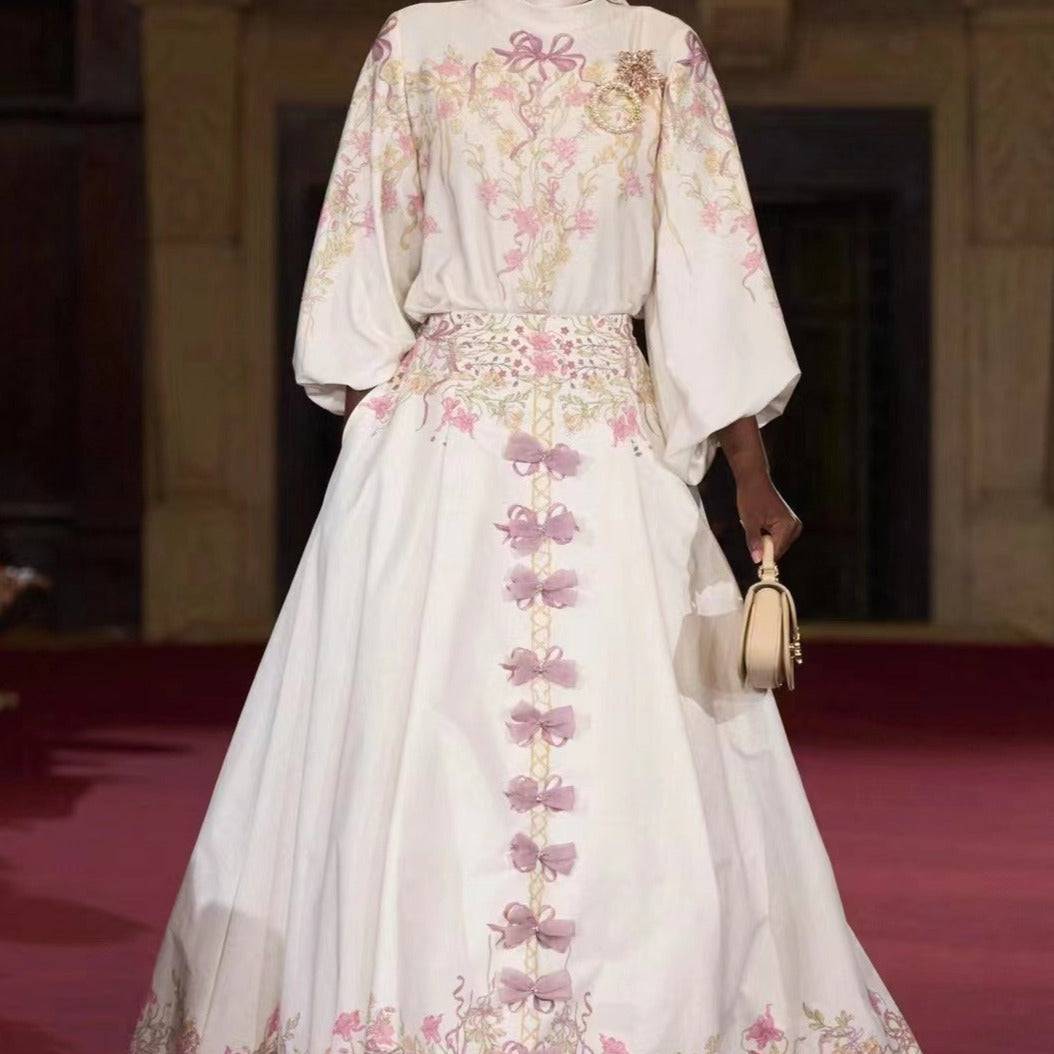 Introducing the Suncoy Nancy Stand Collar Floral Spliced Bowknot Maxi Dress—a captivating blend of modern sophistication. floral femininity. and charming details that promises to elevate your style for any upscale event or special occasion.