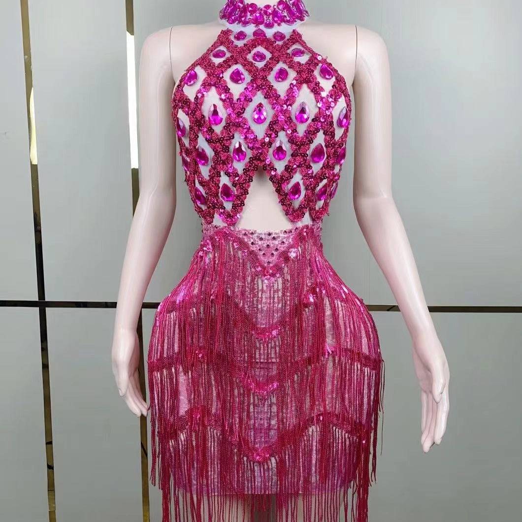 - The combination of rhinestones. sequins. tassels. and a daring backless design creates a head-turning look that ensures you shine in the spotlight.