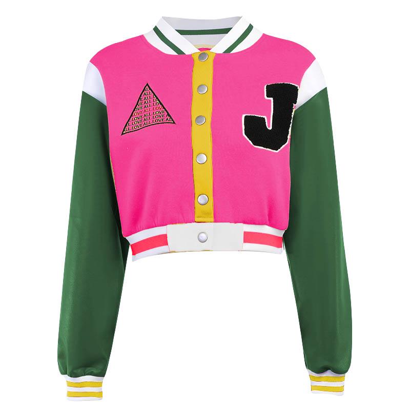 Patchwork contrast long sleeve button embroidery coat top