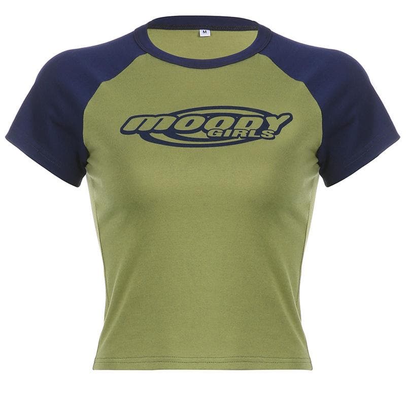 Patchwork contrast short sleeve crewneck "moody" pattern crop top
