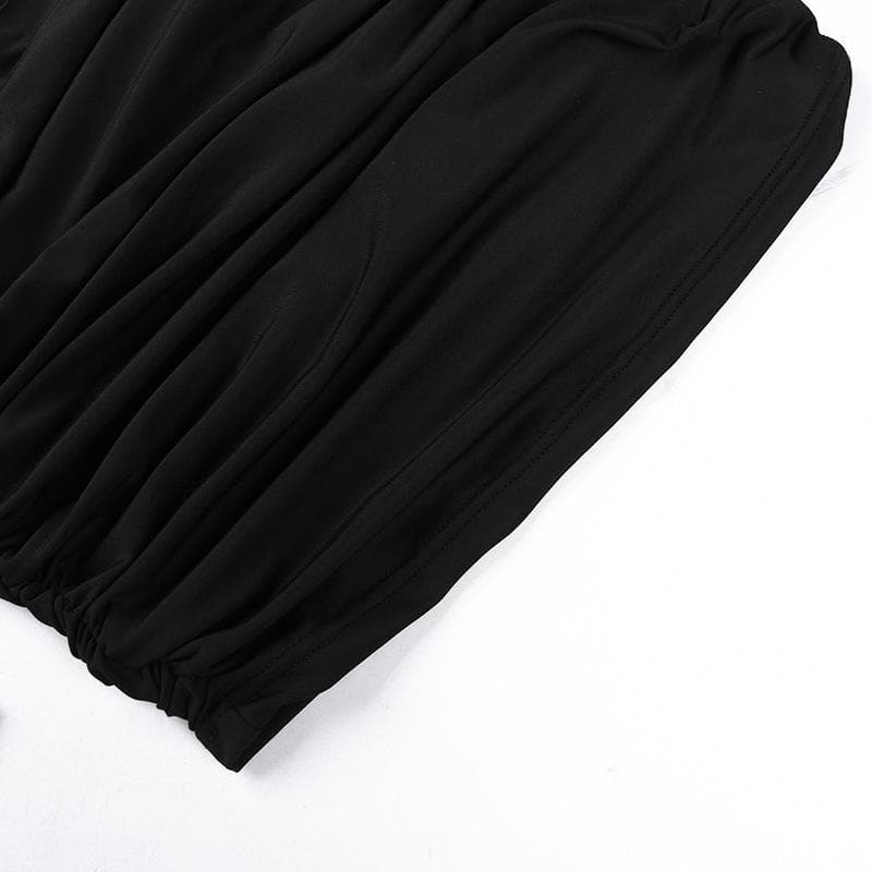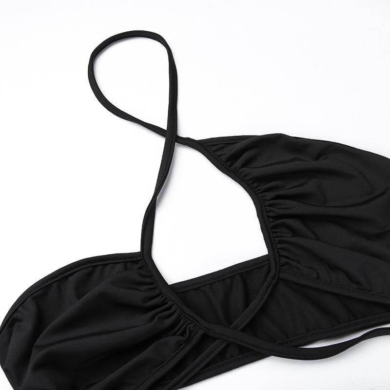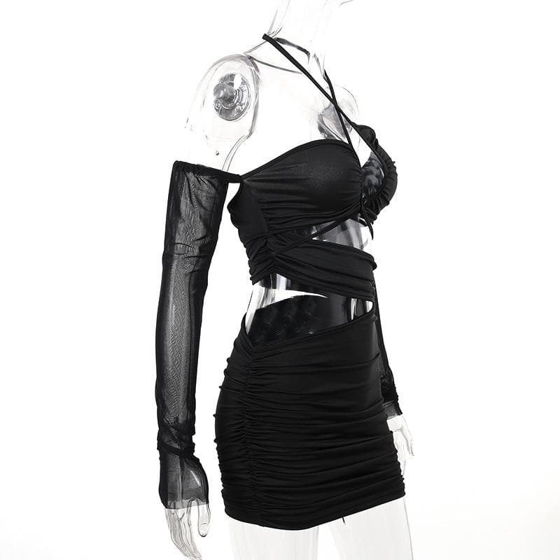 Ruched cross front hollow out halter off shoulder long sleeve backless mini dress