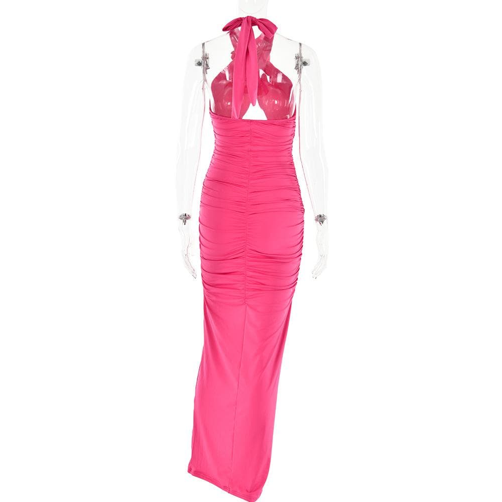 Ruched halter flower applique hollow out cross front contrast maxi dress