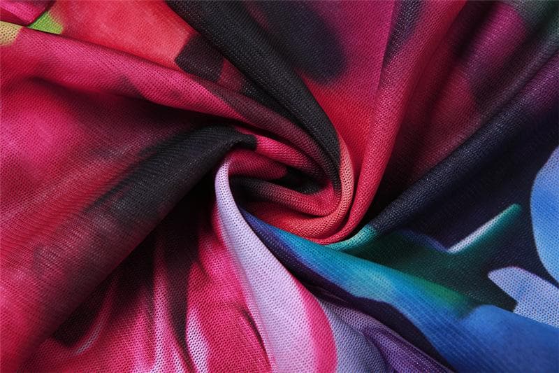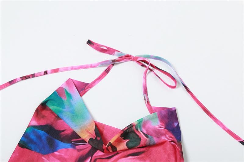 Ruched halter sheer mesh see through backless cowl neck contrast maxi dress