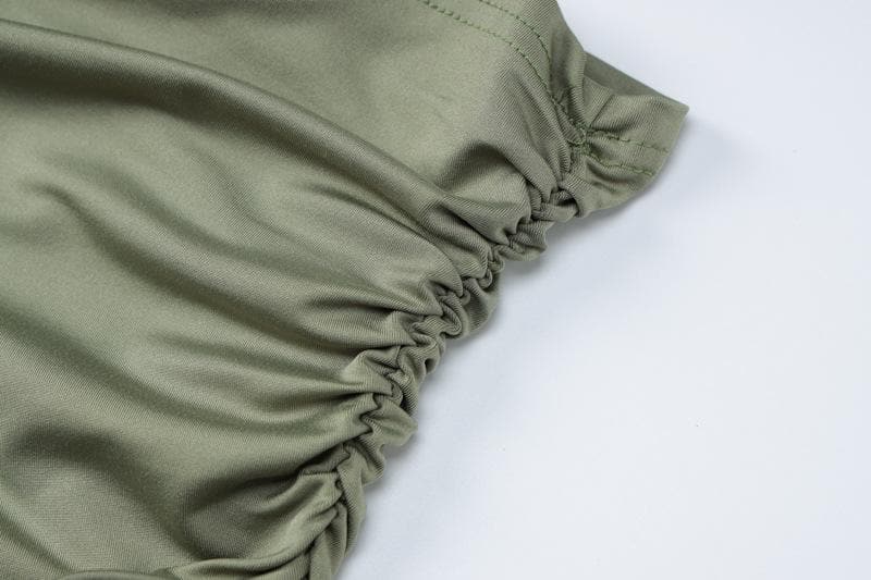 Ruched off shoulder long sleeve solid ribbon mini dress