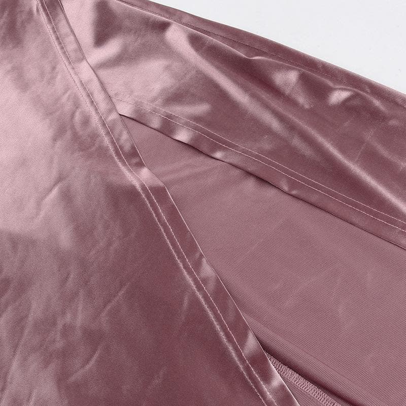 Ruched solid satin zip-up halter backless slit maxi dress