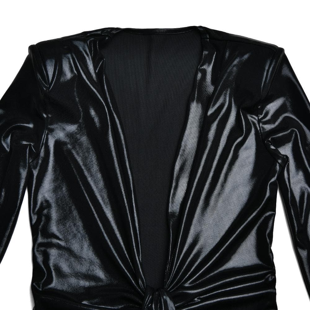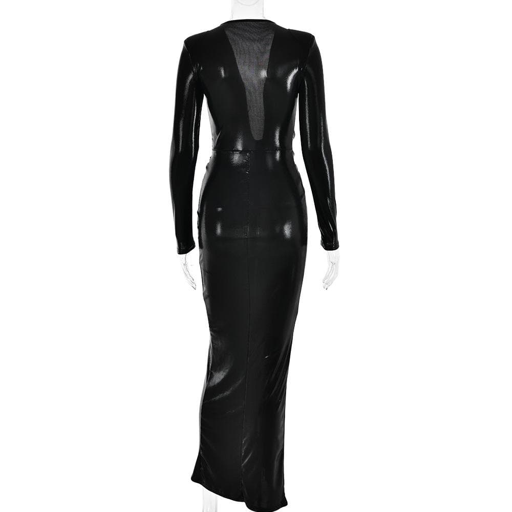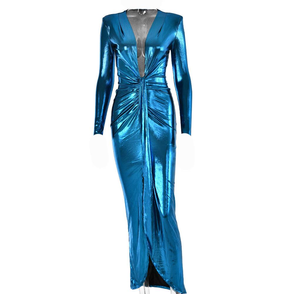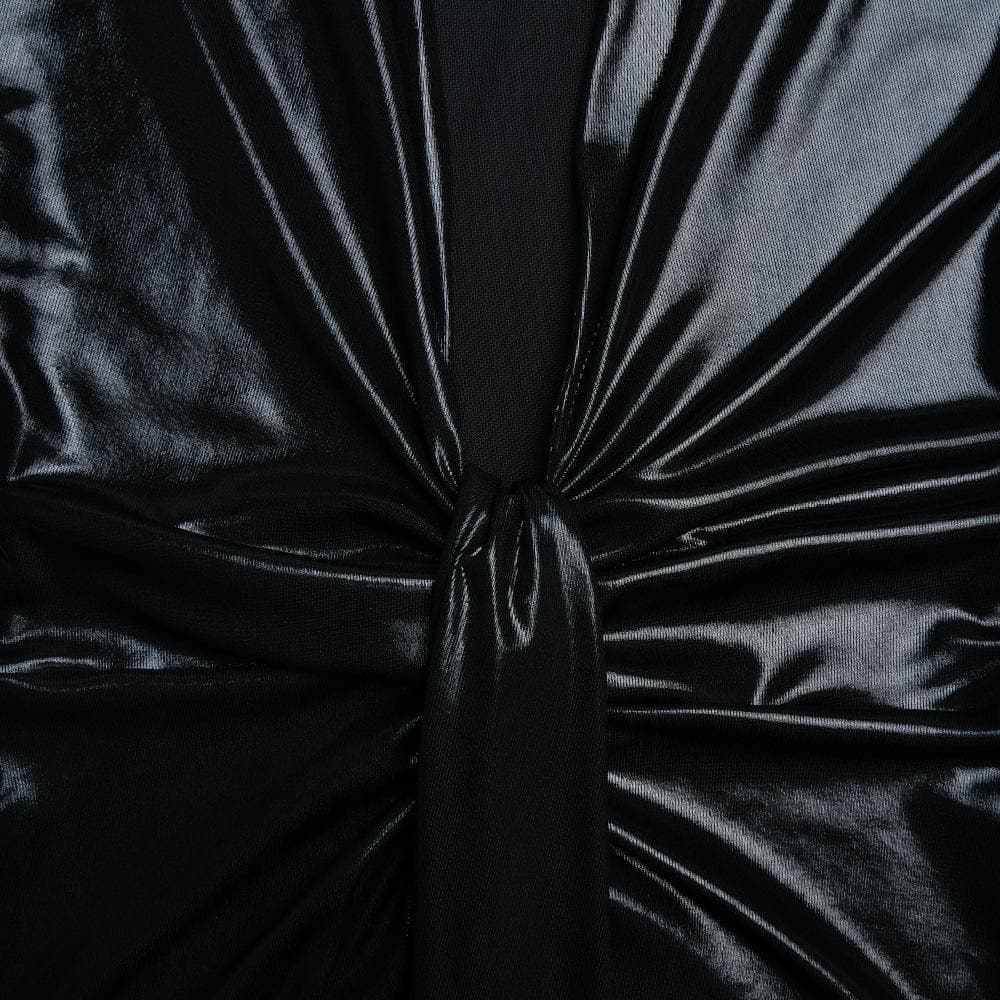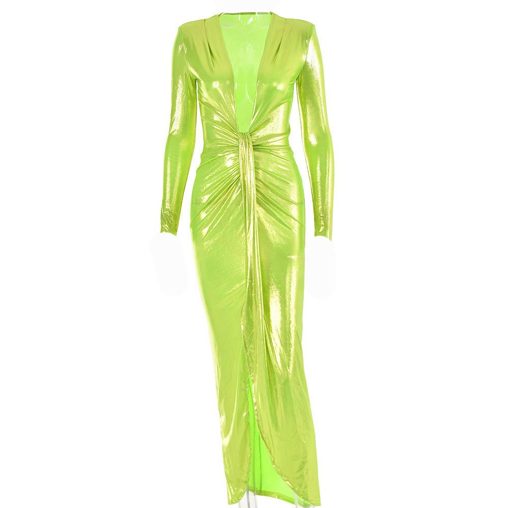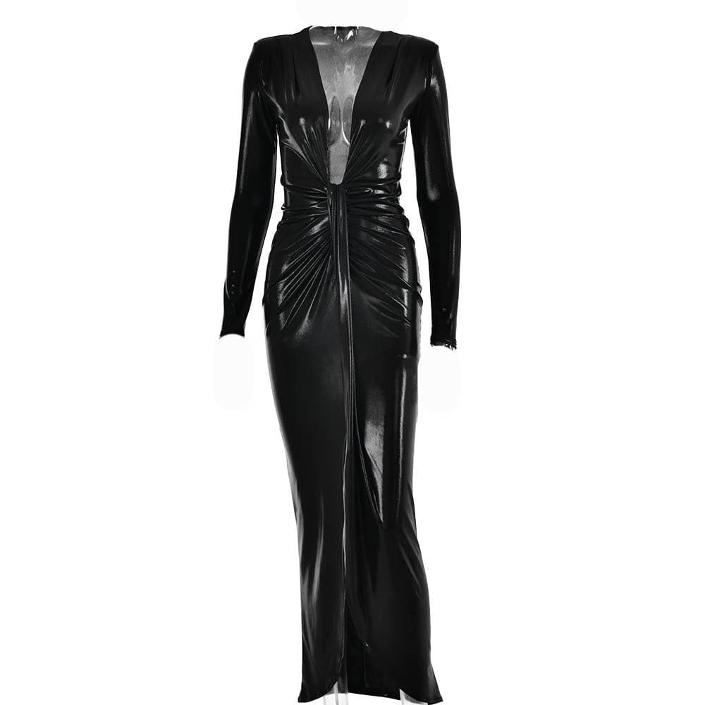 Ruched textured long sleeve v neck knotted maxi dress