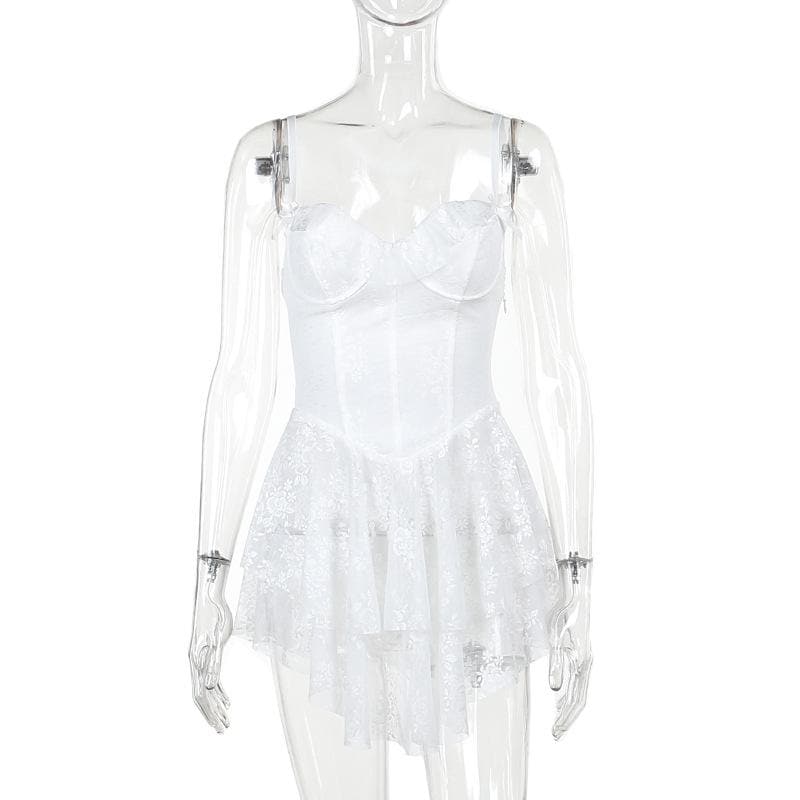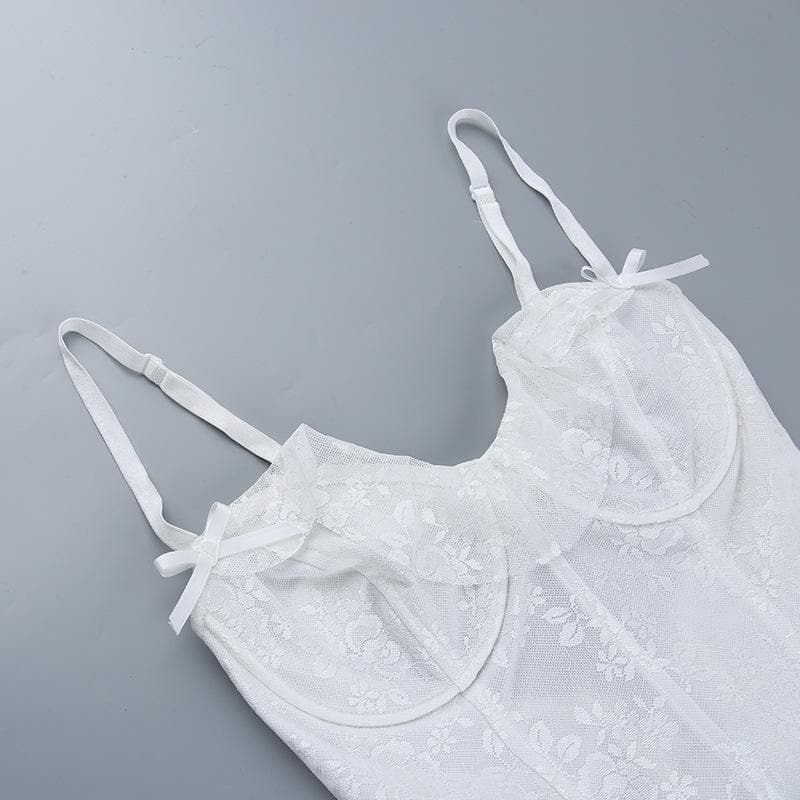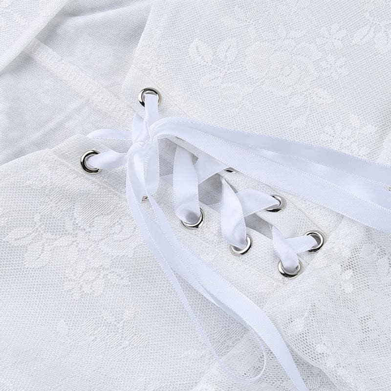 Ruffle bustier bowknot mesh lace up backless cami mini dress