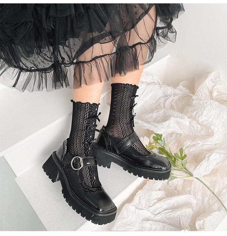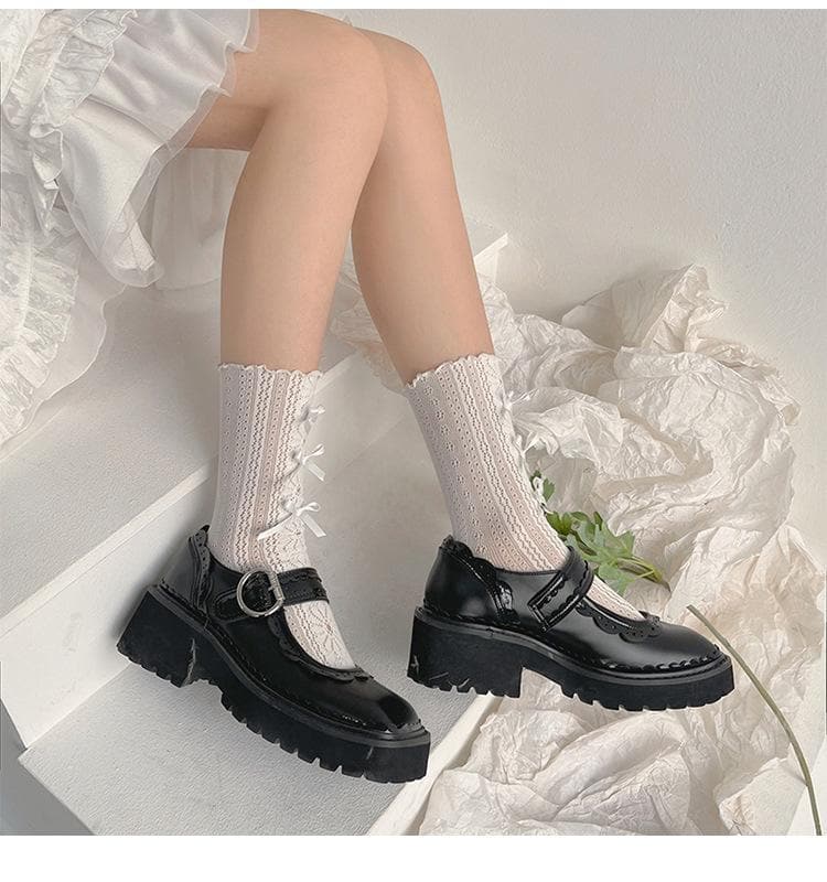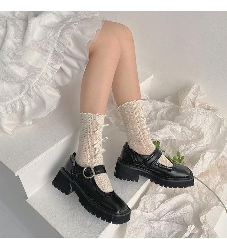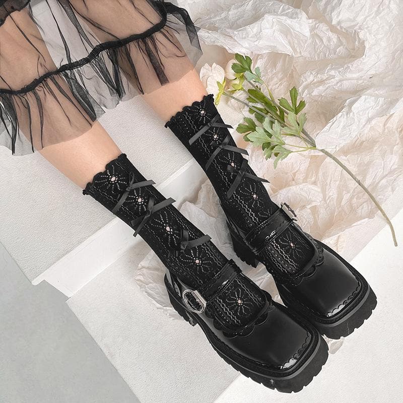 Ruffle bowknot flower pattern long socks