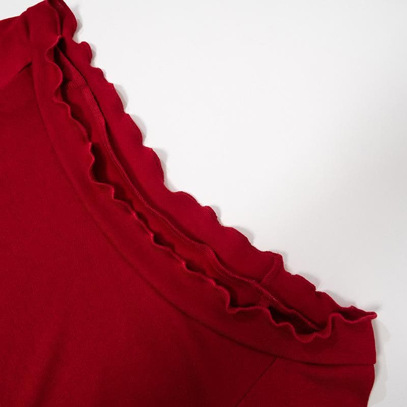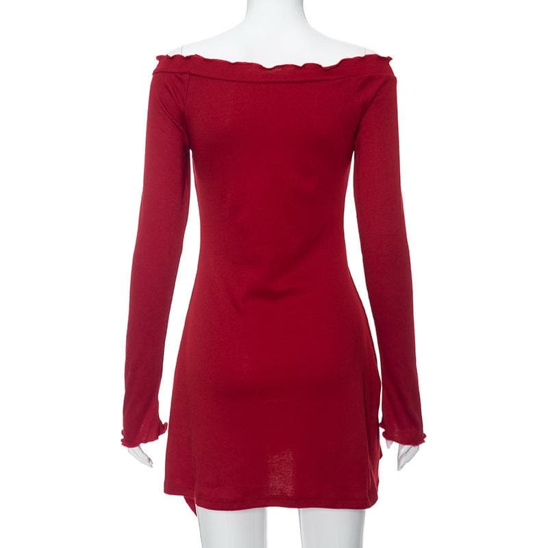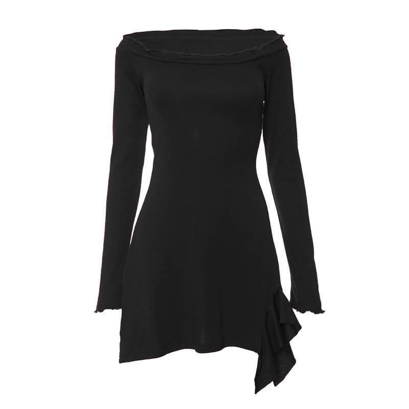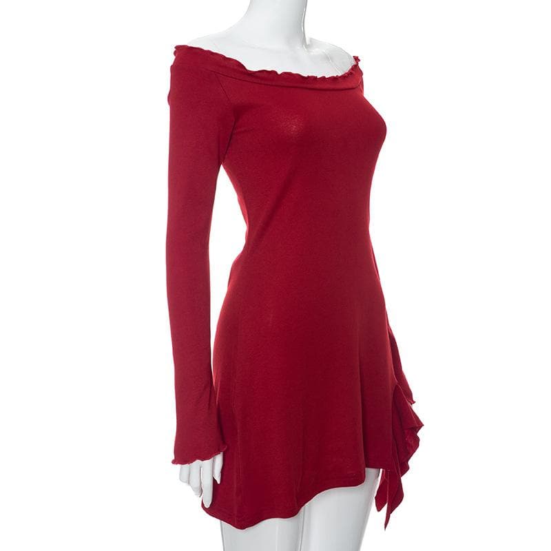 Ruffle solid long sleeve irregular off shoulder mini dress