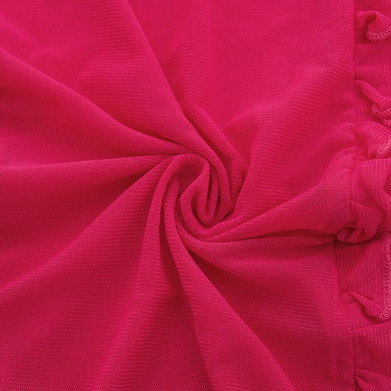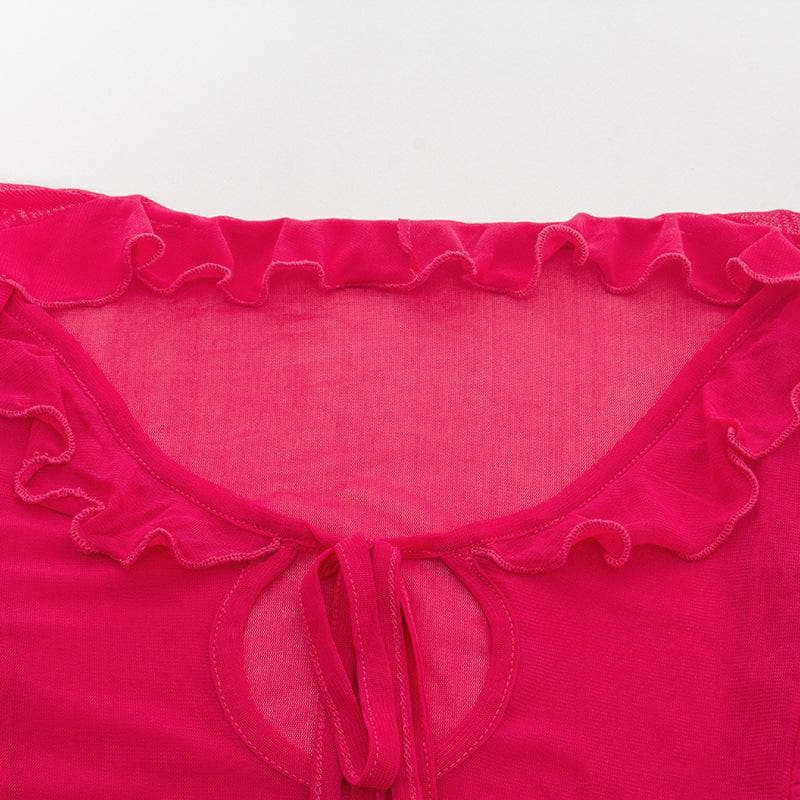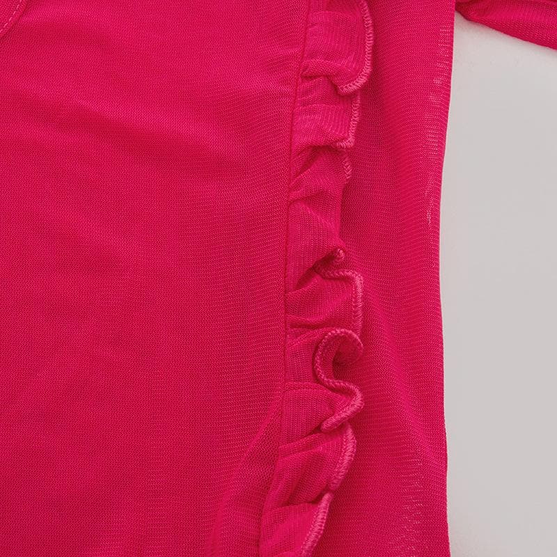 Ruffle turtle neck sheer mesh see through long sleeve maxi dress