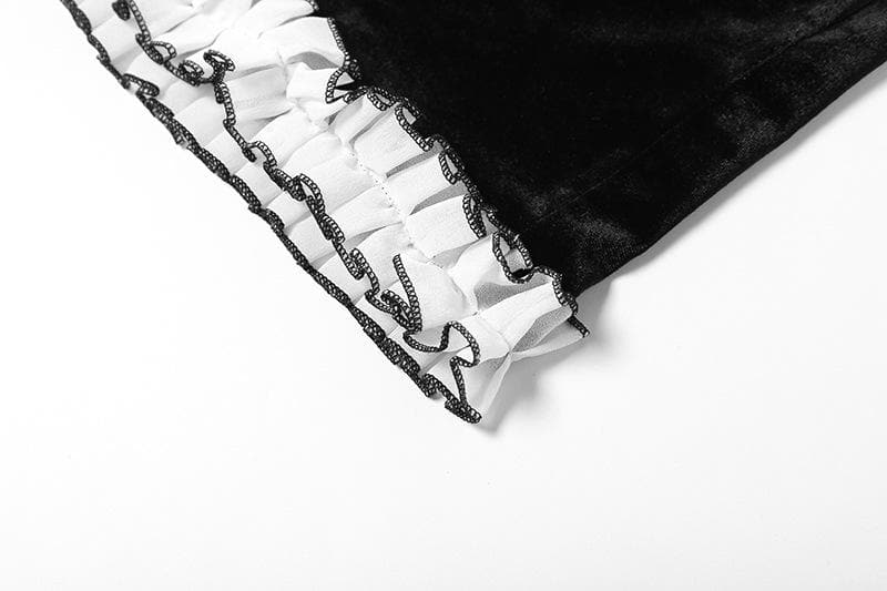 Ruffle velvet stitch ruched backless contrast tube mini dress