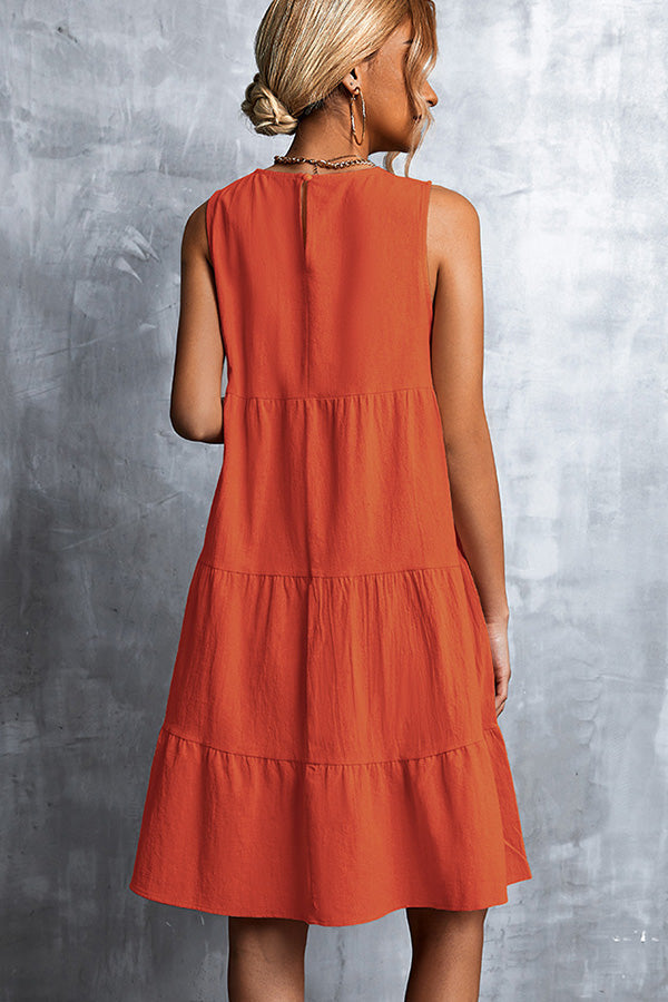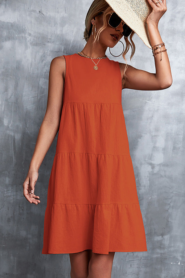 Ruffled Round Neck Solid Sleeveless Mini Dress