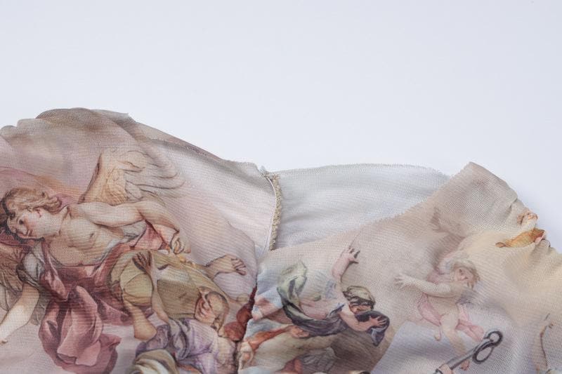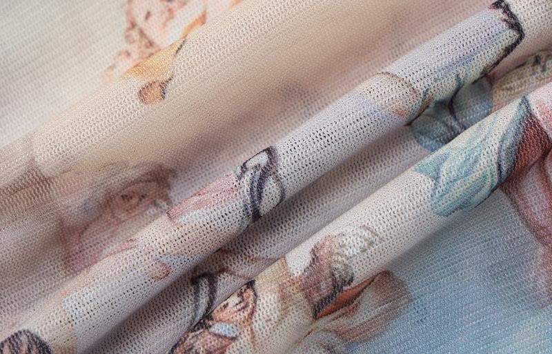 Sheer mesh see through abstract ruched short sleeve contrast mini dress