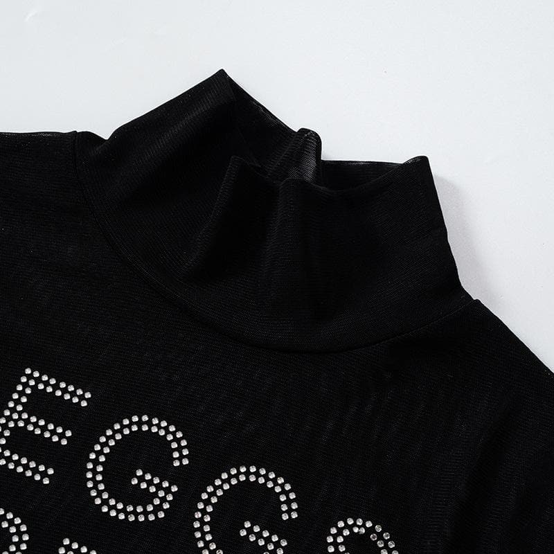 Sheer mesh see through beaded high neck long sleeve bodysuit