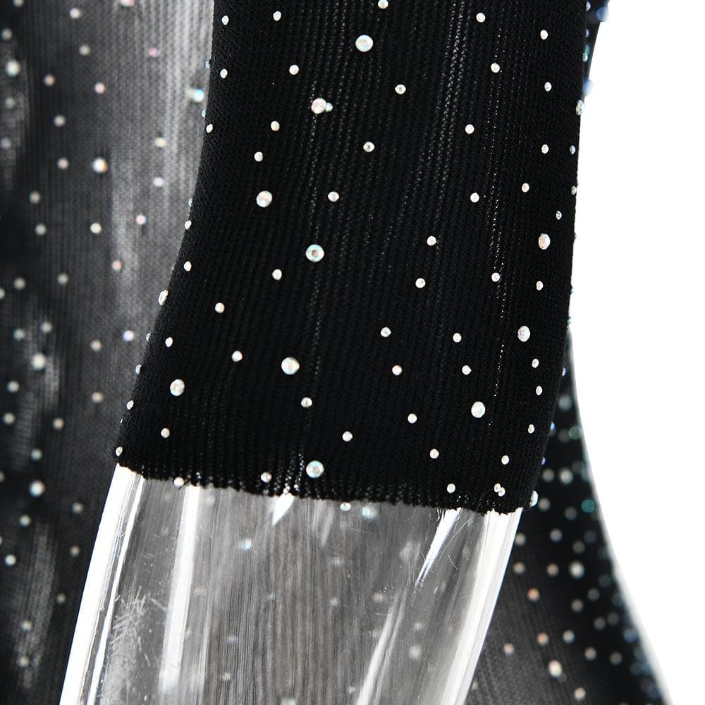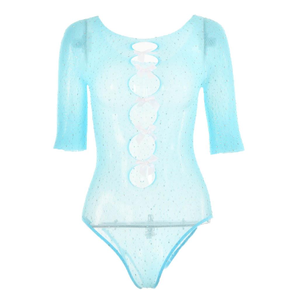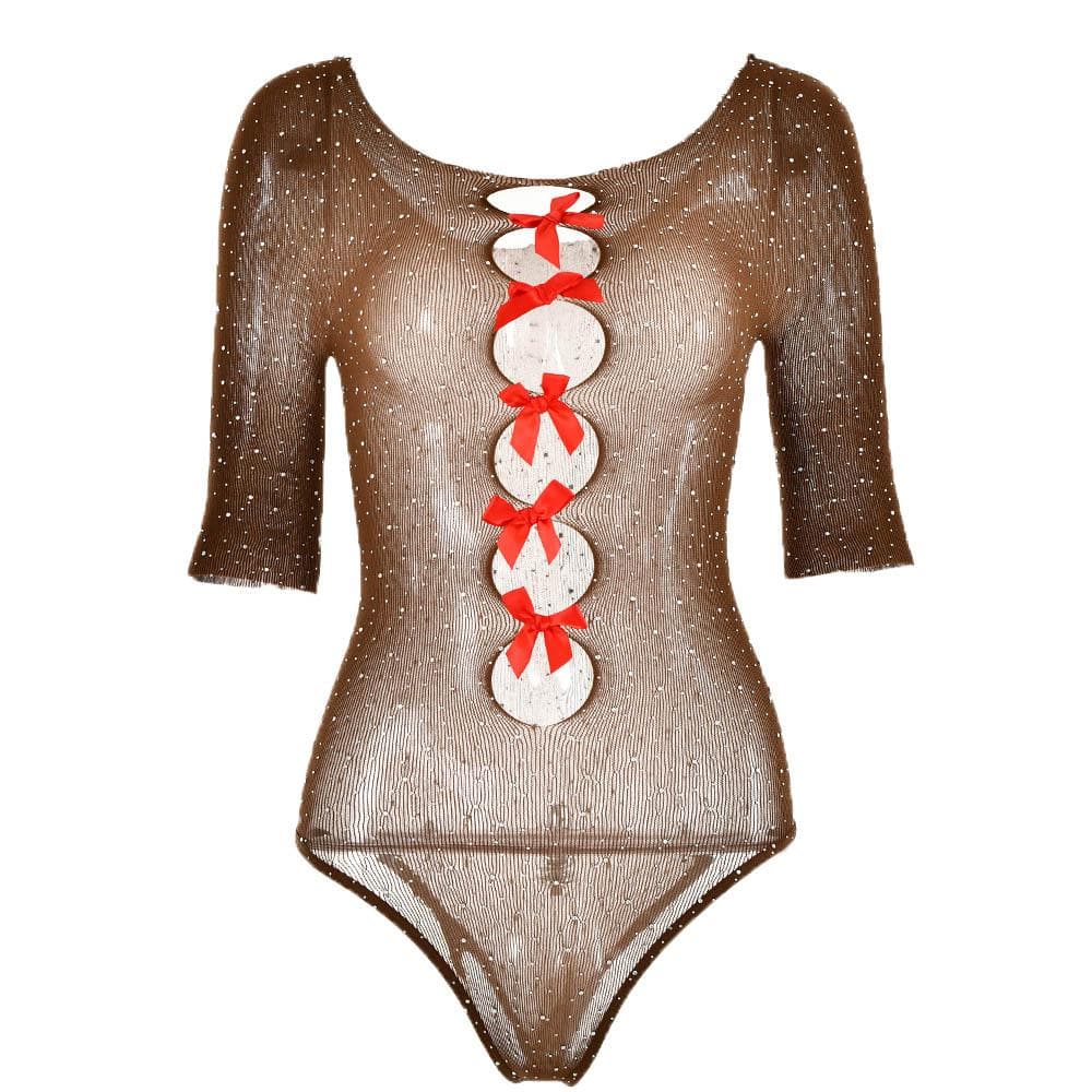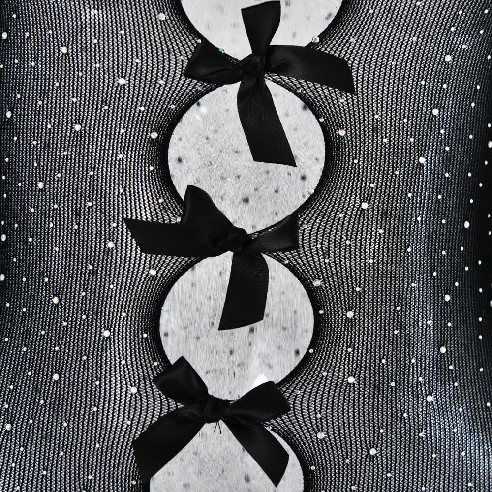 Sheer mesh see through beaded hollow out bowknot bodysuit