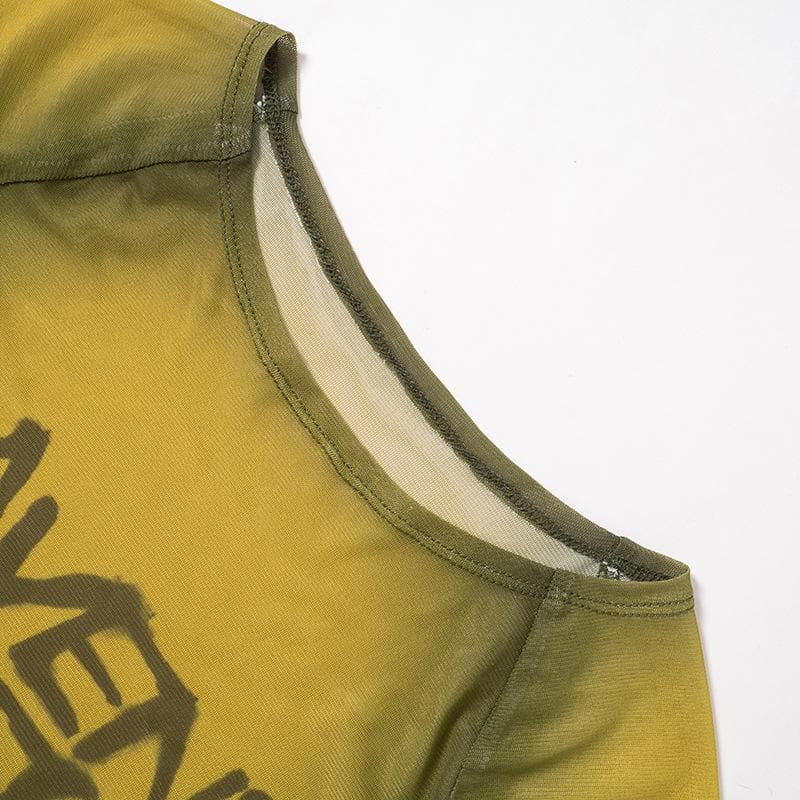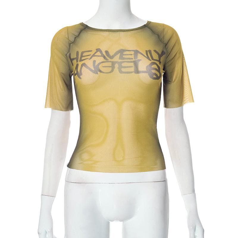 Sheer mesh see through contrast short sleeve top
