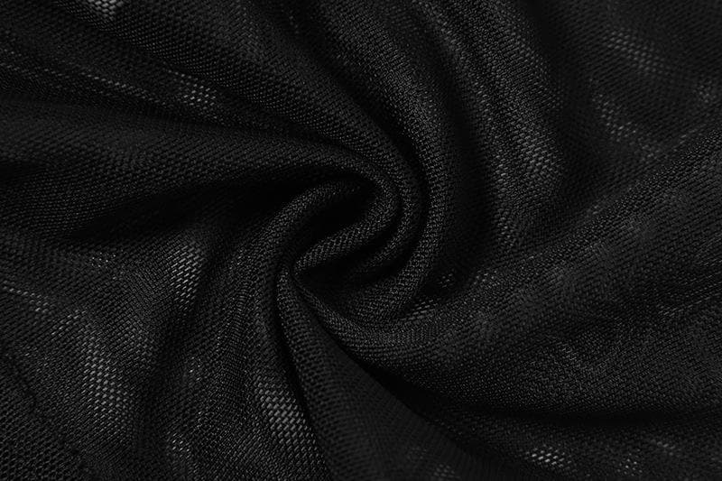 Sheer mesh see through palm embroidered crewneck crop top