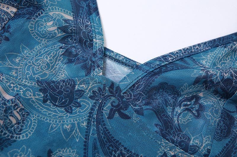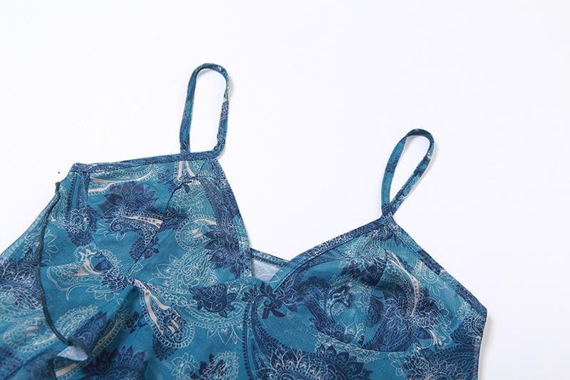 Sheer mesh see through v neck ruffle backless cami crop top