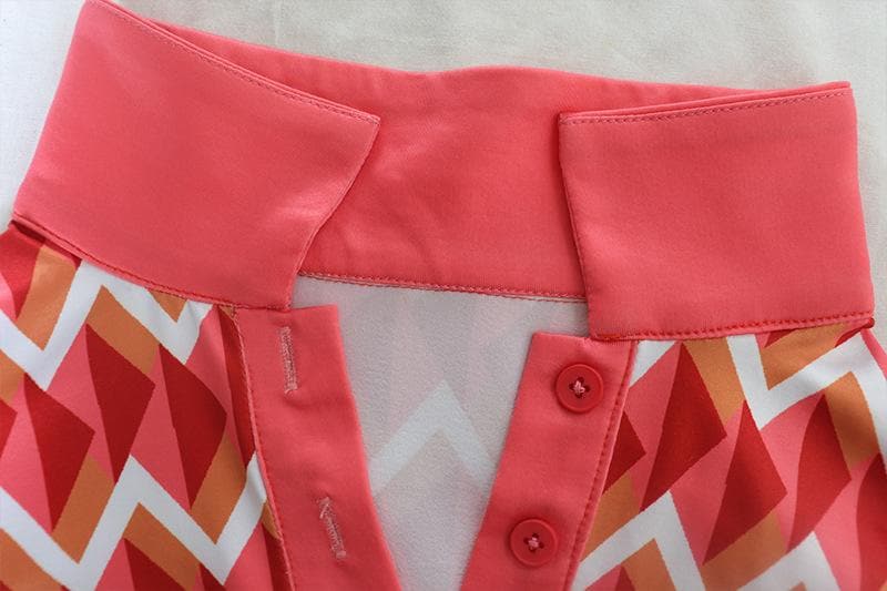 Short sleeve contrast turnover collar button mini dress