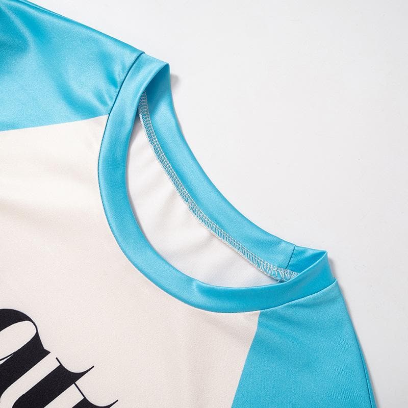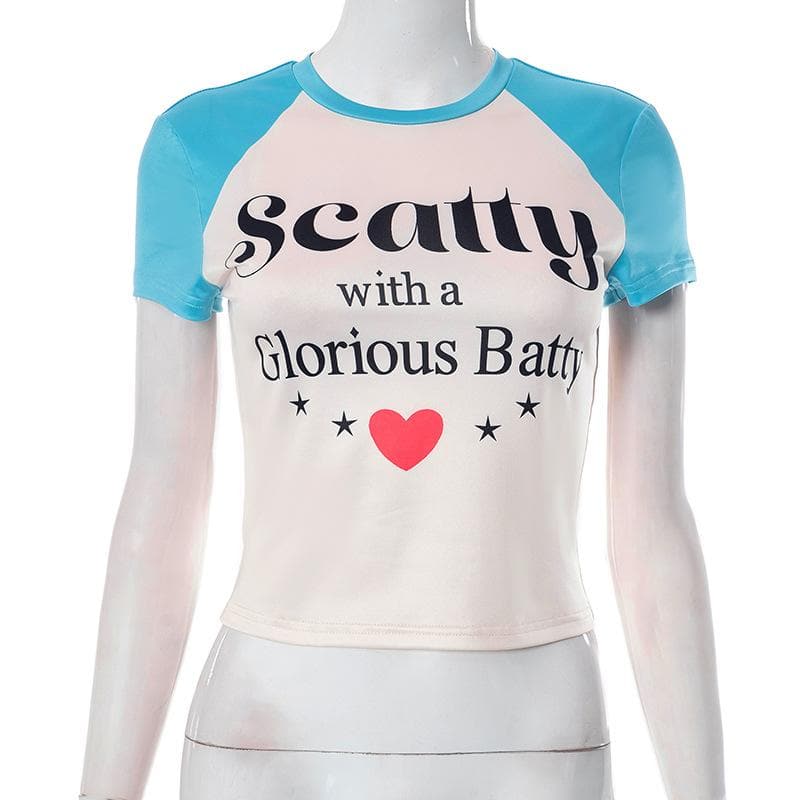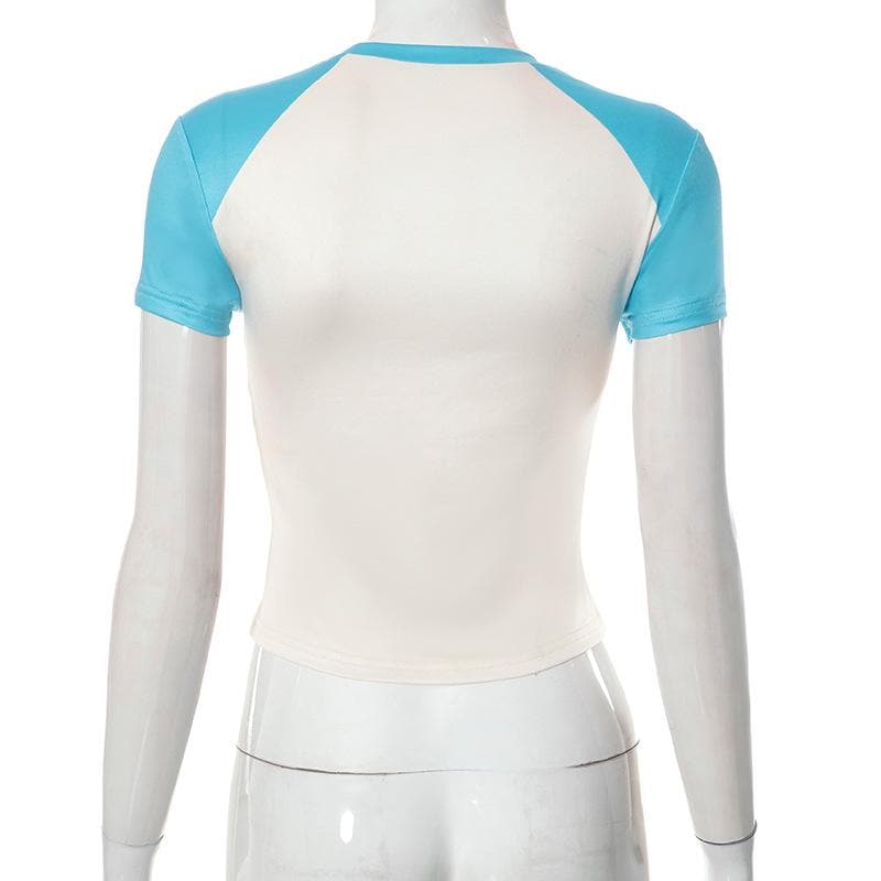 Short sleeve crewneck patchwork contrast print crop top